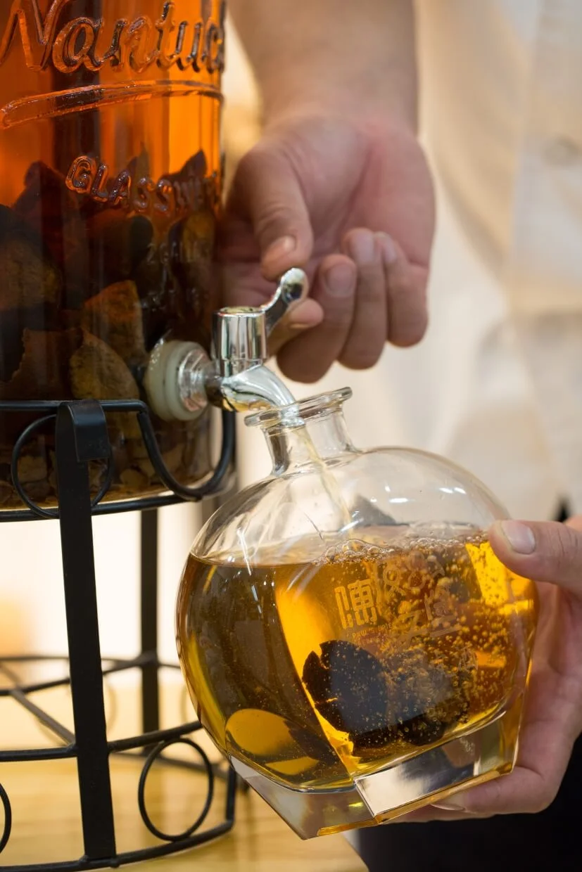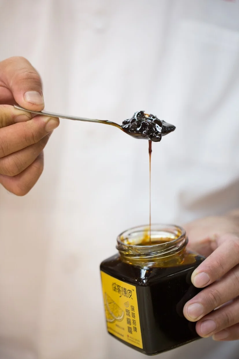時令的陳皮產品只作短期銷售,真正對外發售多年的,則數川貝陳皮燉檸檬。早在八年前,黃亞保在新會買陳皮時,便發現當地家家户户都會做燉檸檬,燉好一大鍋後常備在家。回港後,他便不時在餐廳內預製,把四十年陳皮切條、本地有機檸檬切薄片,連同甘草、南北杏、檸檬葉、冰糖,以及胖大海一起燉煮,為到來的熟客們奉上幾杯飲用,「雖然算不上治病,但總可紓緩喉嚨不適」,不少演藝界朋友均非常喜歡。本來只是餐廳的hidden drink,後來應需要製成瓶裝產品,成為品牌的第一件產品。接下來,蜂蜜浸陳皮、酒浸陳皮等產品逐漸誕生,雖然捧場的多是熟客,但亞保依然對於能把陳皮與眾分享感到滿足。