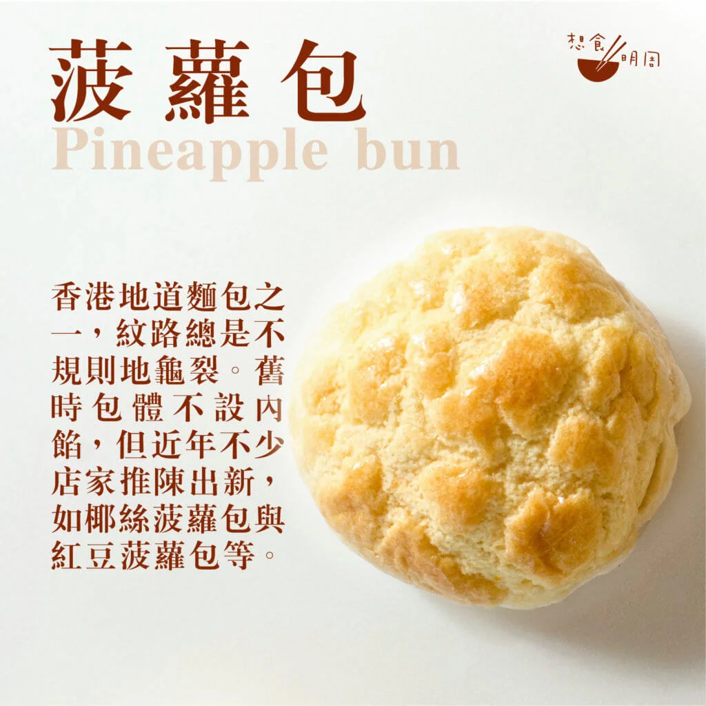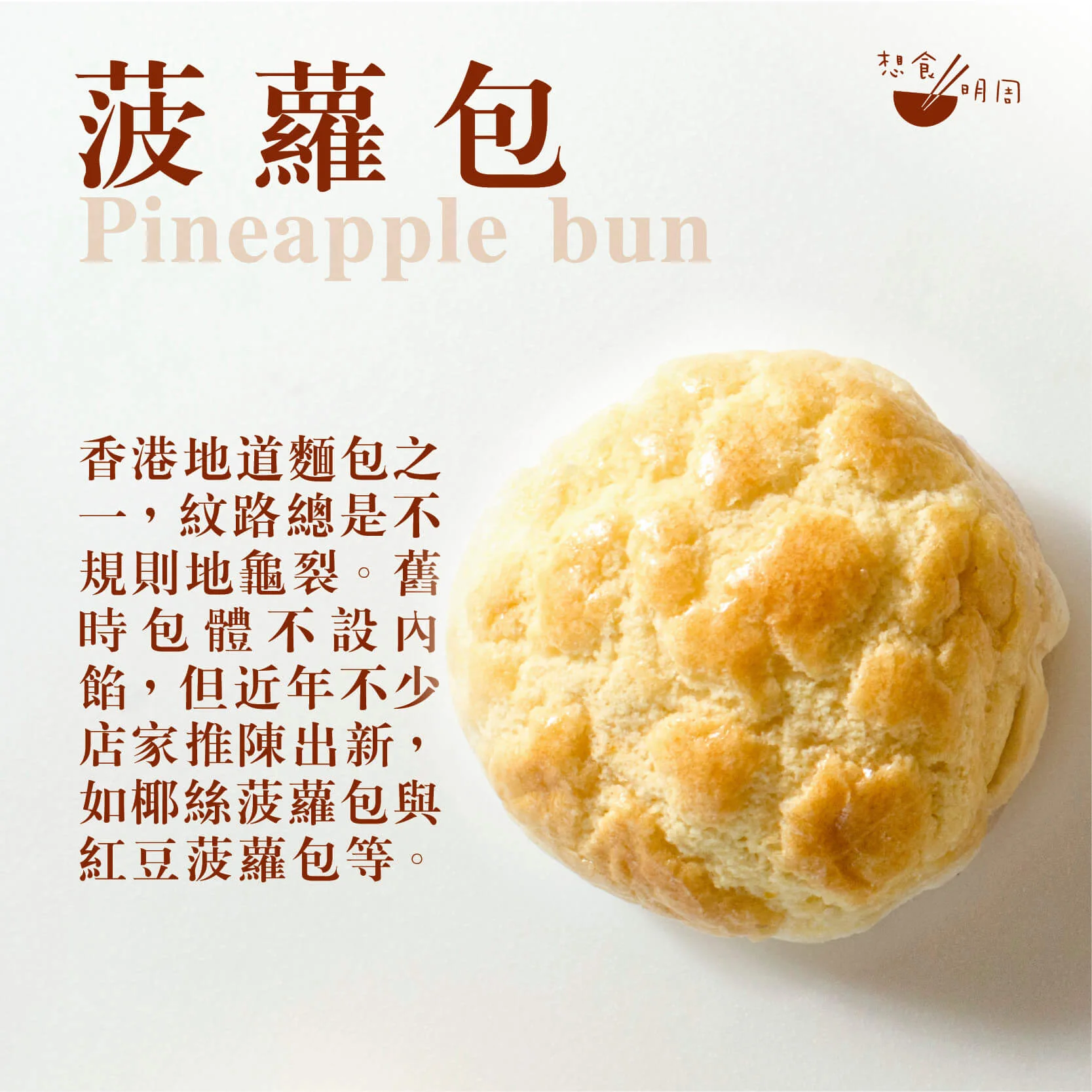 約定俗成,菠蘿包從來都沒有菠蘿。以此為名,全因面層那酥皮,出爐時裂開成一格一 格的,像極了菠蘿。即便後來有人在包體之中加入菠蘿果肉作內餡,成為「真・菠蘿包」。但追本溯源,菠蘿包之所以是「菠蘿」,都是想像力而起。