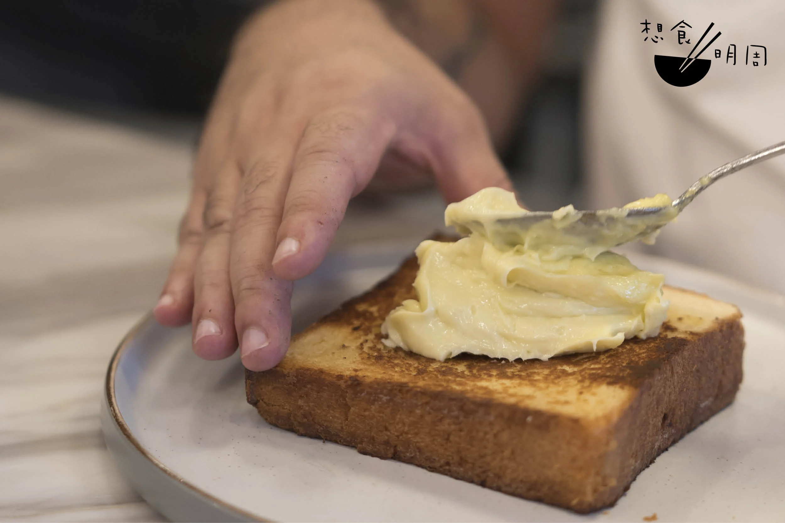 開初他只以off menu(隱藏餐單)的形式試推brioche吐司,沿用在南非老店曾供應的口味,端出一客以蜂蜜煎炸、覆滿肉桂糖及焦糖香蕉的吐司,既是由衷致敬,也順道一試本地水溫,結果好評如潮。在這一片牛油煎香過的軟包上,他曾配搭過燉煮蘋果配煙肉,又曾私家配製奶醬多口味,至現時所放上的,則是淺漬過的菇粒及嫩菠菜,口味上更大眾化、更貼近本地人的喜好。