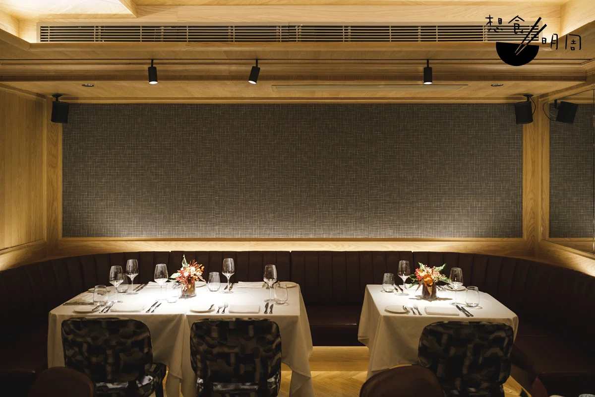 述說一間餐廳的故事,不一定靠主廚的菜式;透過空間的百葉簾、壁板、圖案襯墊,亦能重塑其百年風華,為再度開業的心意辯白。