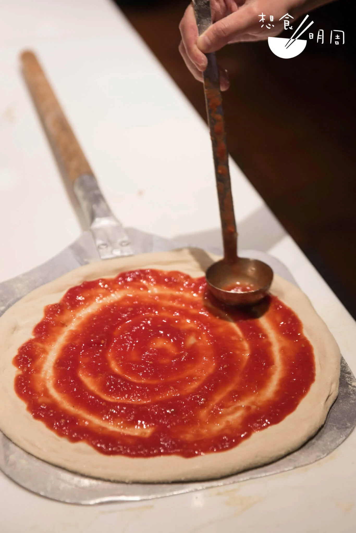 當圓盤一個又一個地端上桌面,率先映入眼簾的總是鮮豔香草、番茄汁,以及形形式式的配料。往往到了入口反覆嘴嚼時,薄餅底是煙韌或是鬆脆?是香口或是無味?這才見真章。