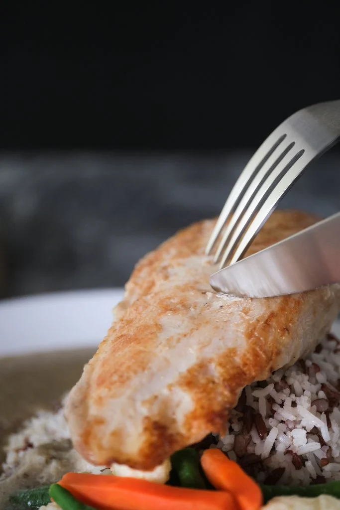雞胸肉富含支鏈胺基酸,可以修復在運動中造成的肌肉施壓和破壞,讓肌肉線條更明顯。但市面上大多數雞胸肉快餐的評價都是「水煮無味」、「口感乾柴」,因為雞胸肉脂肪較少,且肌肉組織結實,容易在烹飪時流失肉汁,所以用大火煮熟,或以小火慢煨都是烹調雞胸肉的大忌。大快活廚師採用先煎後焗的方式,可保持肉質嫩滑多汁,而且凸顯本身肉質柔軟的口感。一口咬下時有表面的煎香口感,也能保留中層肉質的軟滑,還有不同醬汁搭配,增加風味,又能食得健康。忙碌的都市人毋須苦惱下廚,也能享用美味快捷的正餐,讓健身這份堅持變得輕鬆又簡單。