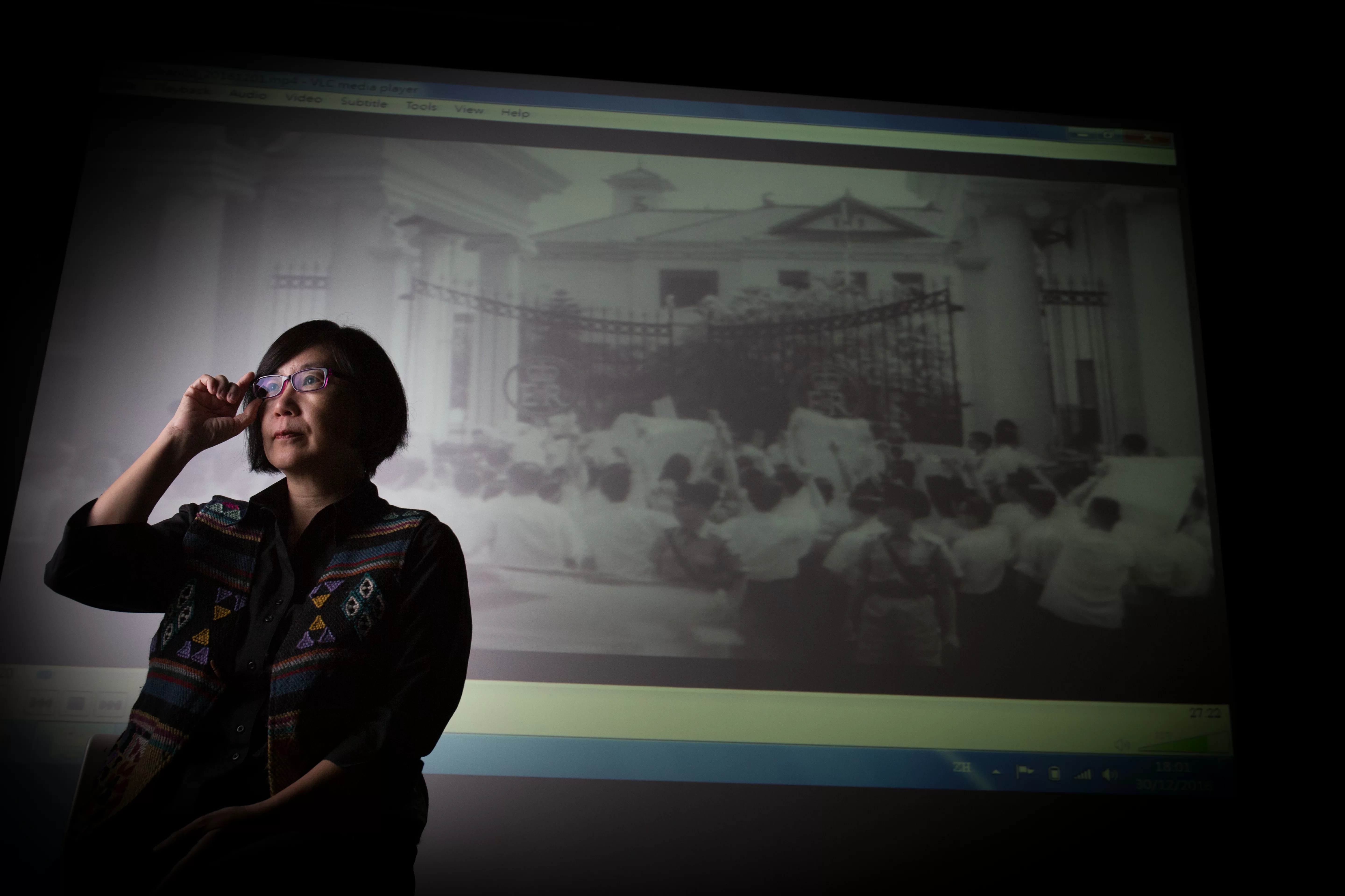 我抓了一個瞬間偷瞄導演,逆光中彷彿看到她以苦行僧形象在微縮機前佝僂。羅恩惠對真相近乎偏執,但為的不只是那段封塵歲月──歷史和現在本來就共用同一個肚皮,反反覆覆顛來倒去,待回頭,「六七」已然「一七」。