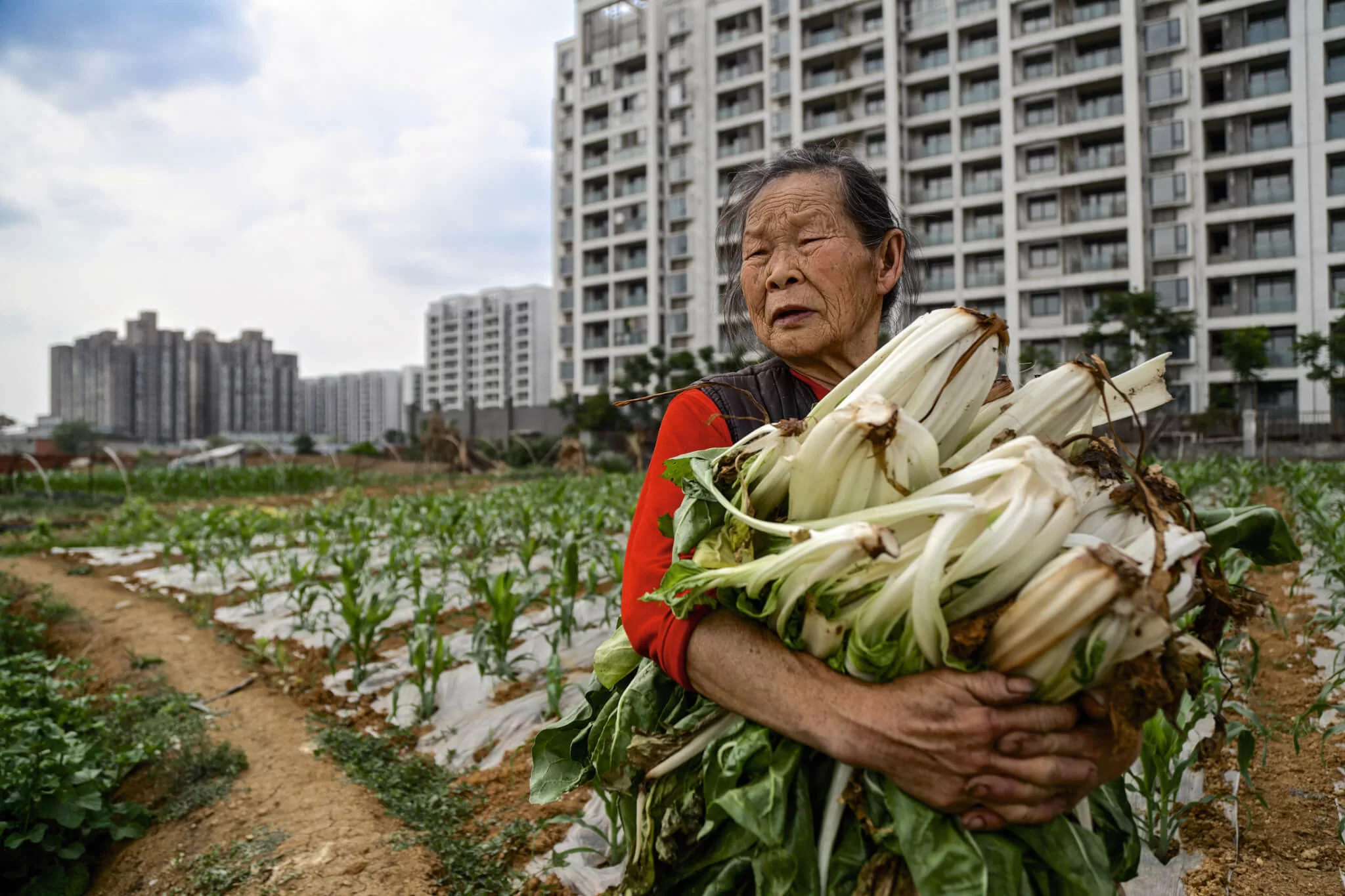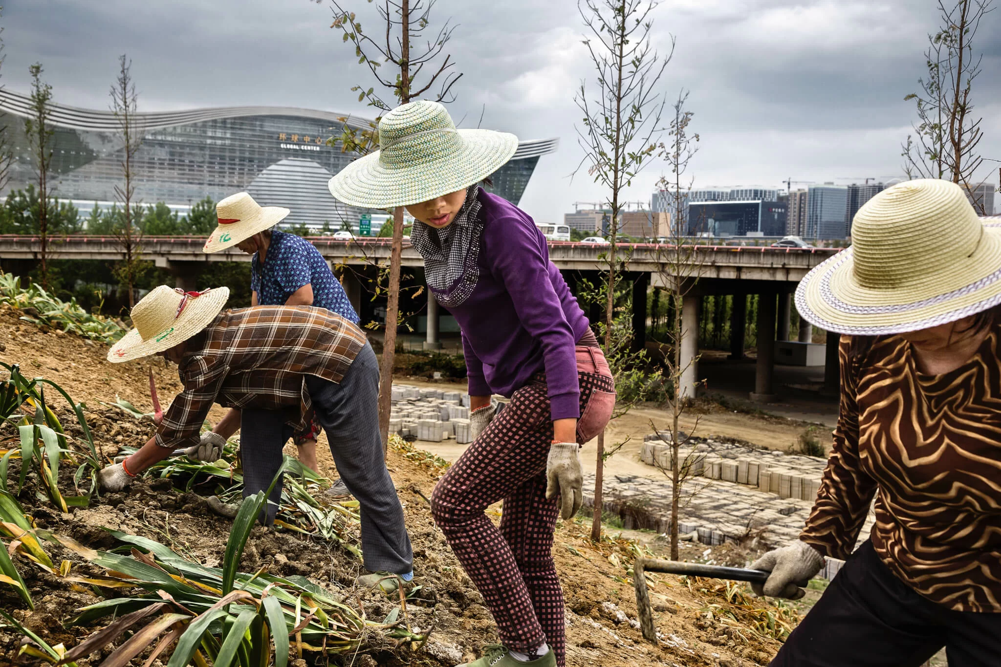 這些前農民世世代代的耕作習慣也像沿襲 下來。在高聳的樓宇和石屎地之間,他們總能找來小塊土地種植農作物。在建築工地,成羣的建築工人跳過了地瓜、豆類、白菜和生薑的種植園。