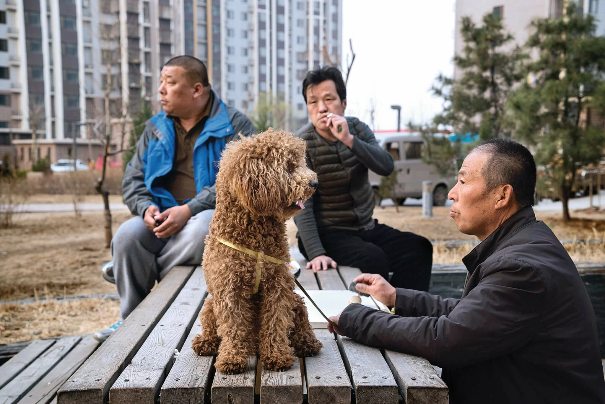 北京以南的一個新地區,他遇到了一羣 五十歲左右的前農民,他們正坐在公園欣賞一頭貴婦狗,其他犬隻則沒這一頭貴婦狗幸運, 牠們需要看門口或成為火鍋中的食物。