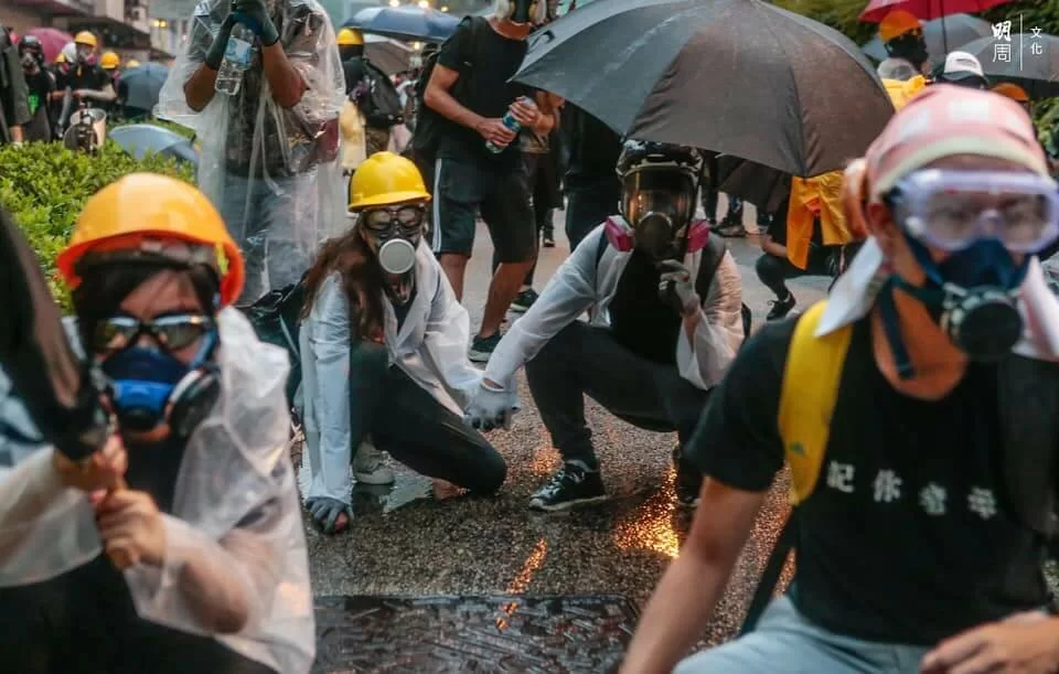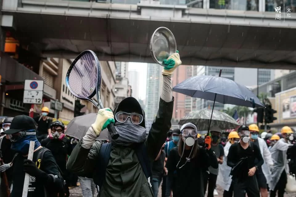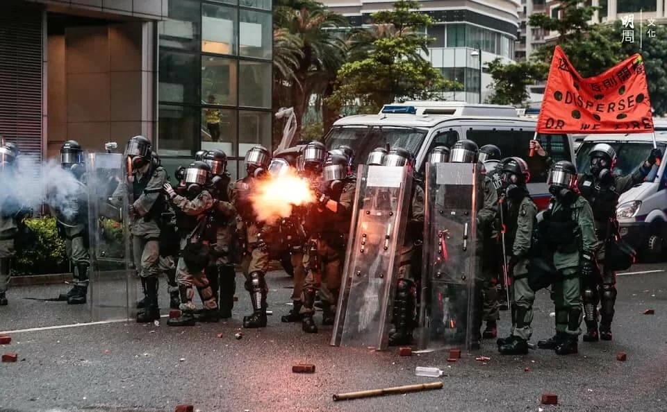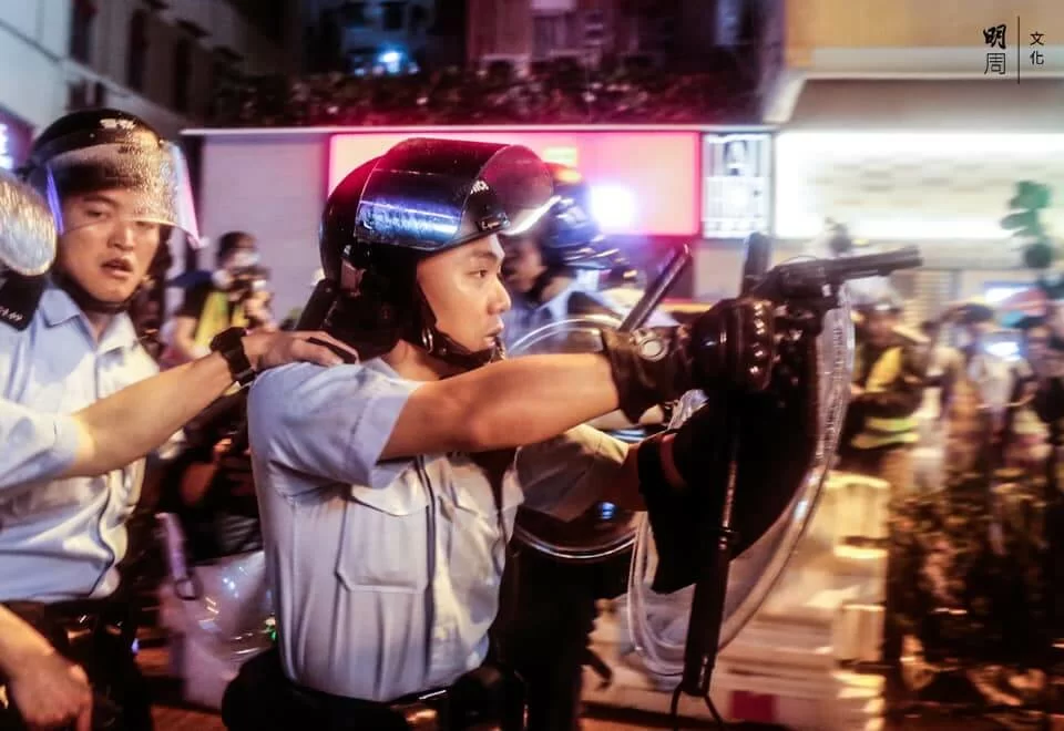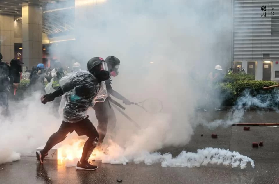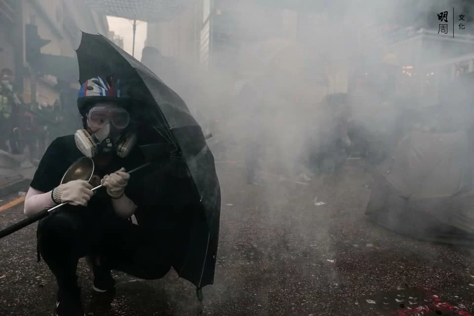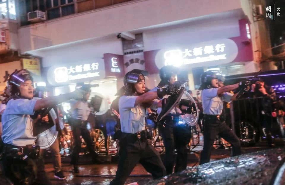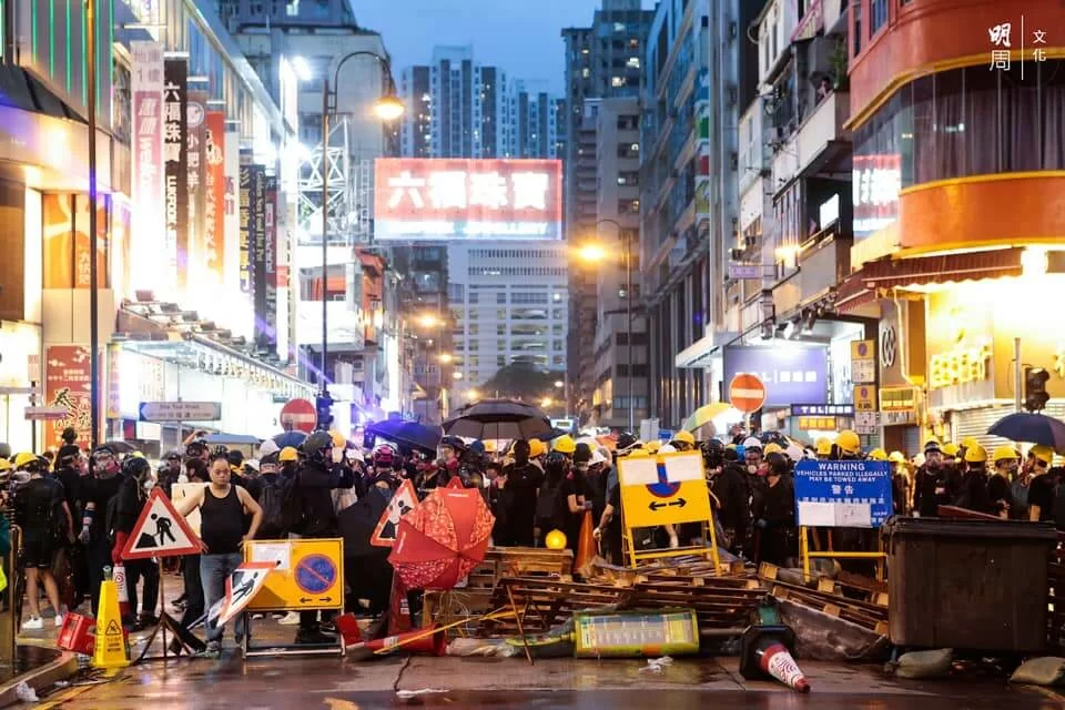 警方與示威者持續對峙,楊屋道彌漫催淚煙,有示威者曾嘗試以網球拍將催淚彈擊回,隨後示威者退至沙咀道,再設路障。
