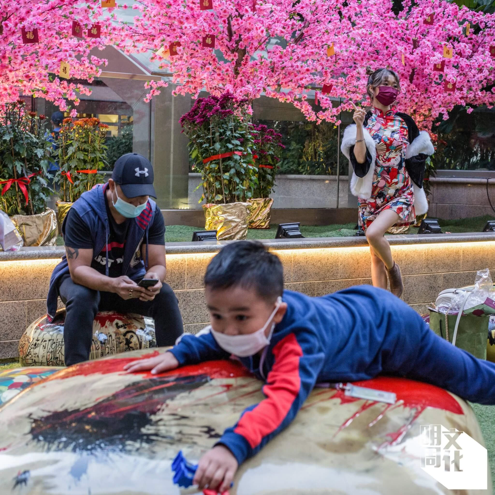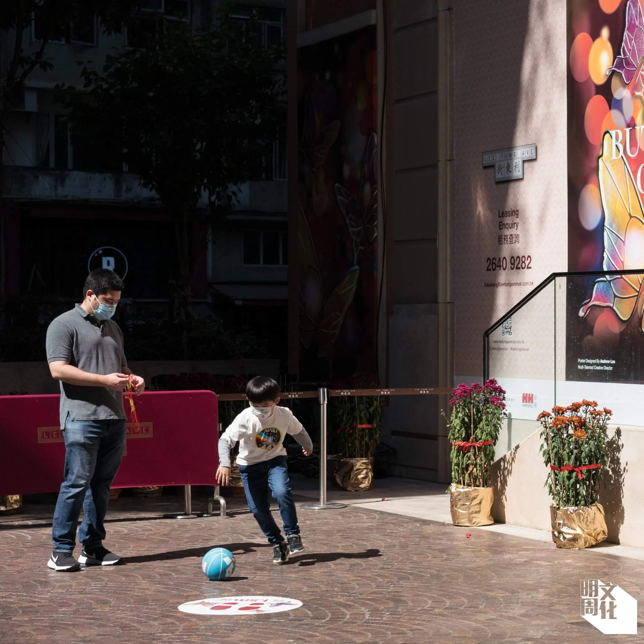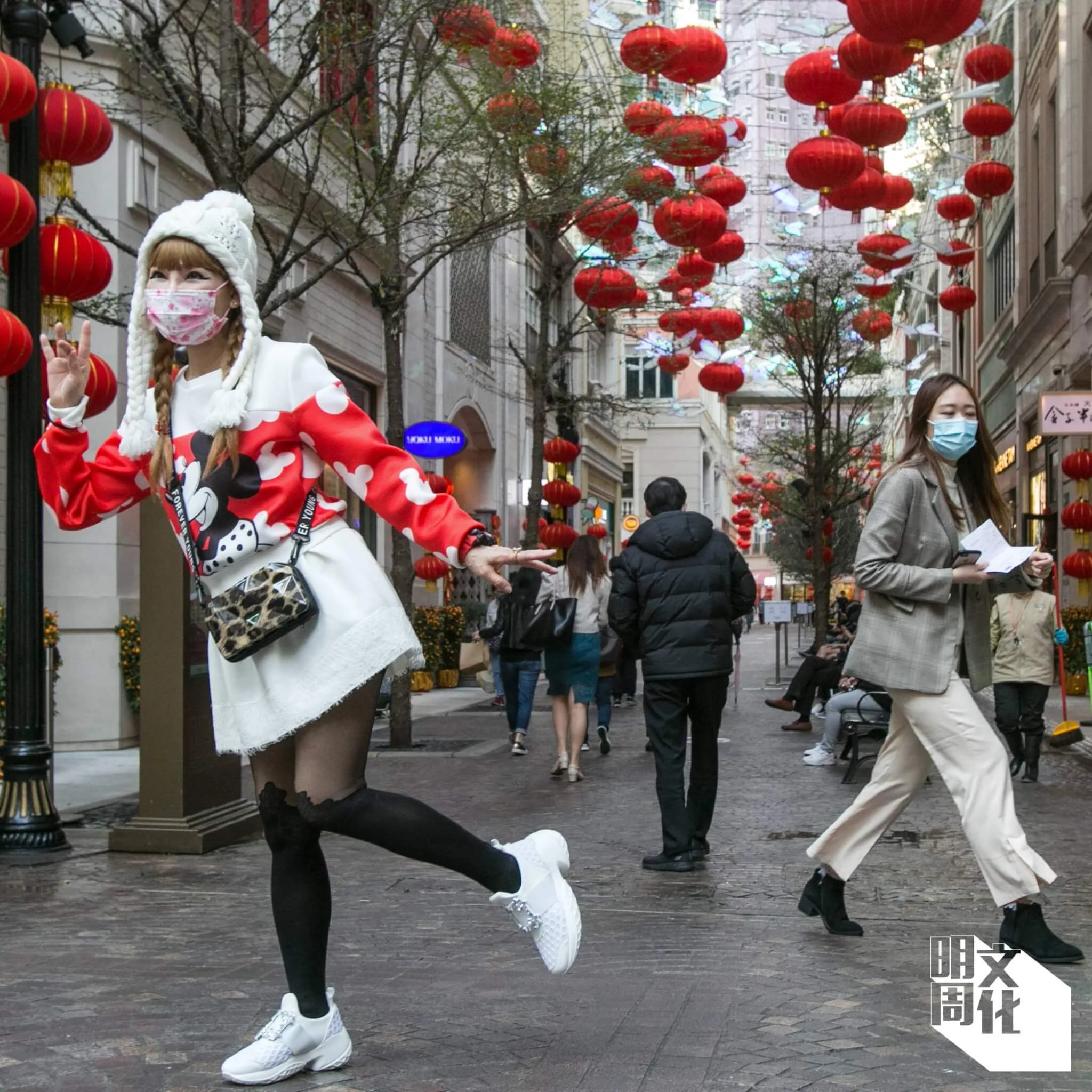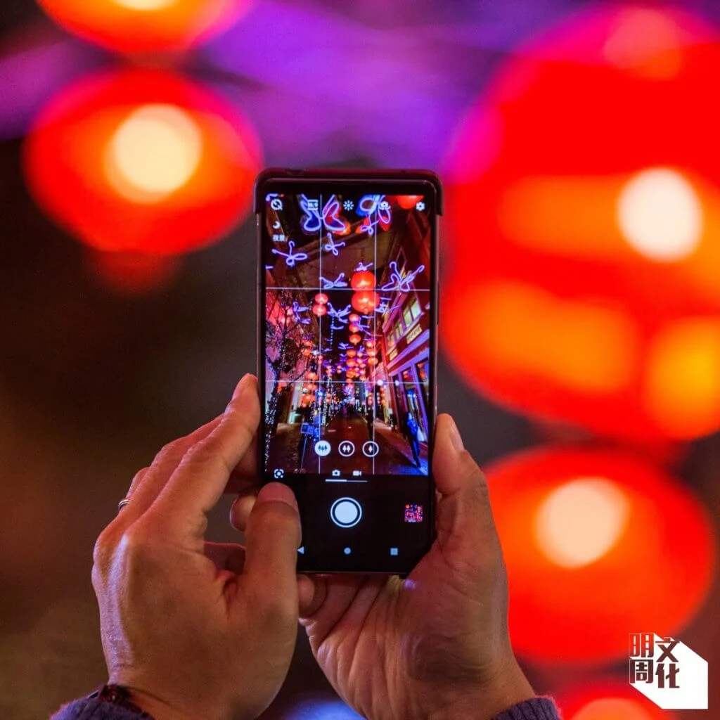 這時候,一個應該剛放工的上班族女士在我旁邊驚嘆:「好靚呀!」她舉起手機,對準懸掛在這條仿歐陸風格的步行街上的一個個中式大紅燈籠和蝴蝶燈飾,不斷按下快門。此情此景,我在為了寫這個專題而屢次往返「利東街」的多個晝夜裏,看過無數遍。各人有各人的取景角度,有的也會轉用前置鏡頭、以這些節慶佈置作背景自拍合照。他們看來都是由衷為這裏的美而興奮。
