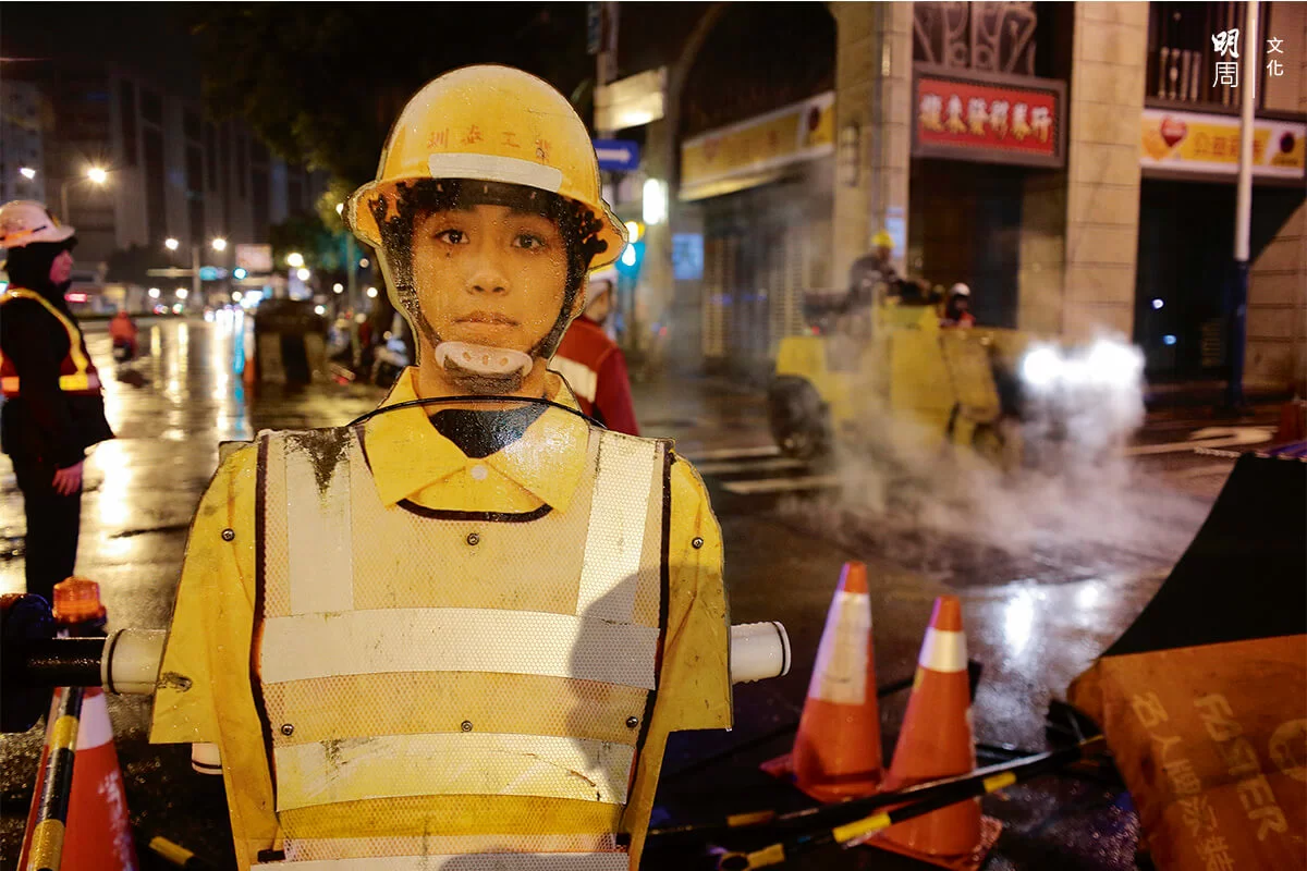 當圍籬架起,畫起一塊工地,那化外之地就與危險未知便劃上等號,人車都得繞過避走。在台灣,每個塵土飛揚的工地都有一個工程人偶,佇立於路上指揮交通,或像神靈一樣庇佑安寧,而它們本來是法規下列明的標準配置:電動旗手。
