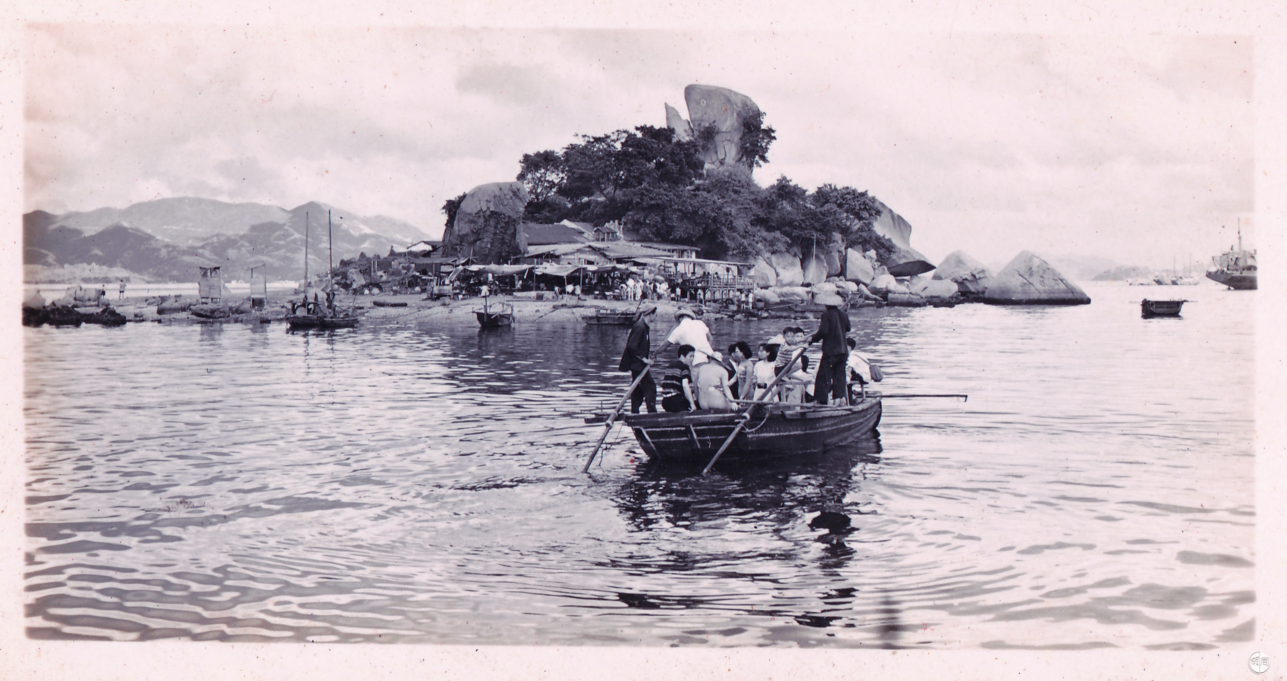 魚尾石下有許多攤檔,不少 艇家在島上賣炒蜆等海鮮, 為遊人醫肚。(照片由《九龍海岸線》作者余震宇先生提供)