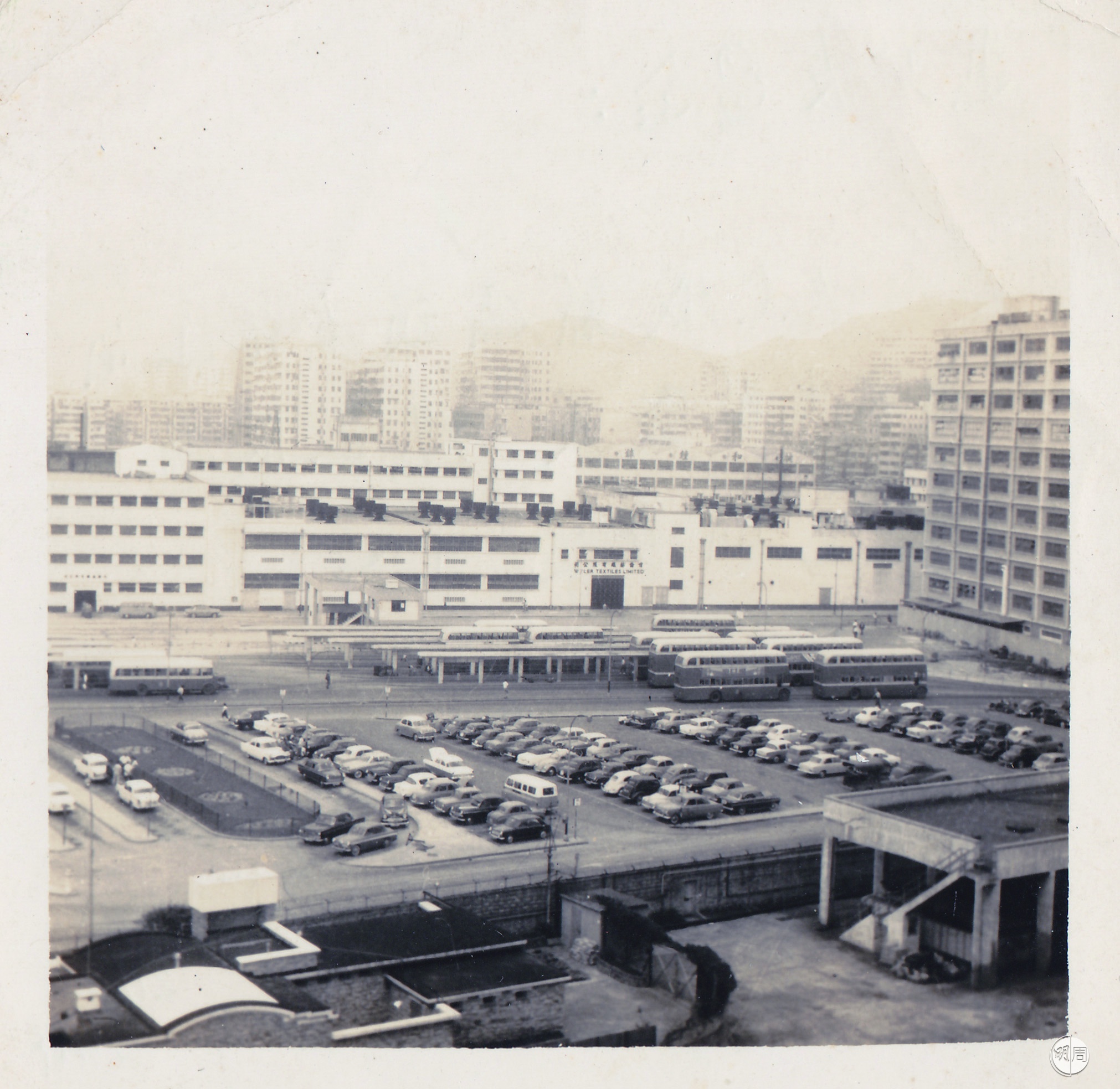 1965年的九龍城碼頭,巴士總站後的建築是偉倫紗廠,於七十年代改建成偉恒昌新邨。(照片由《九龍海岸線》作者余震宇先生提供)