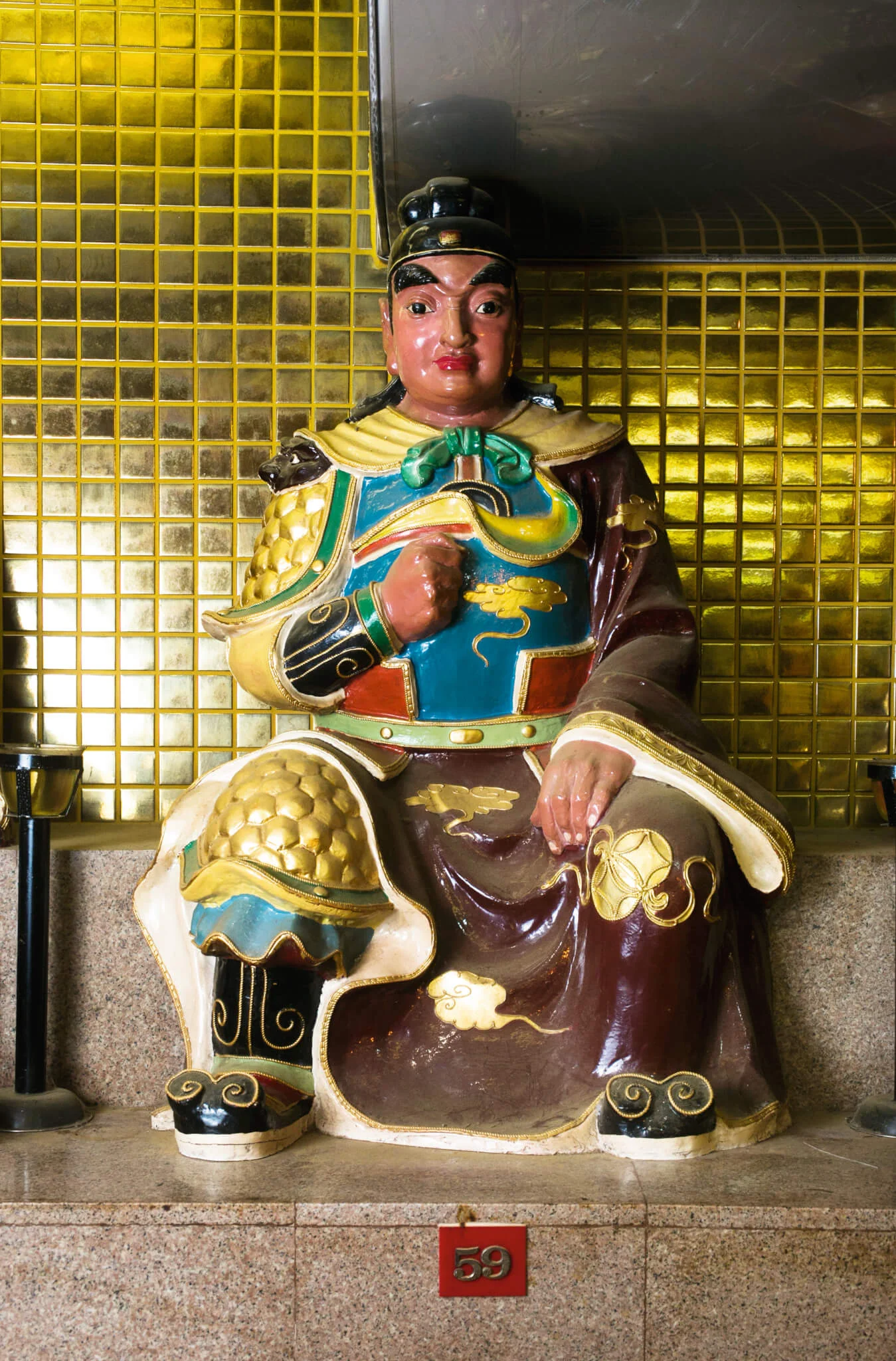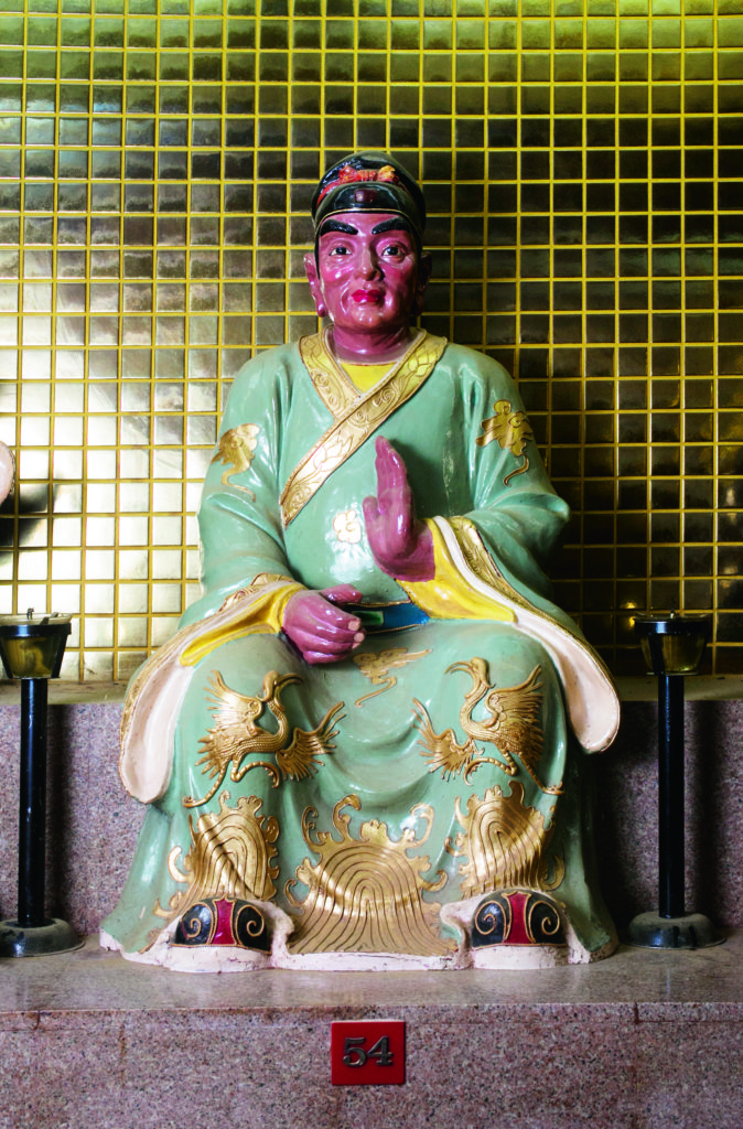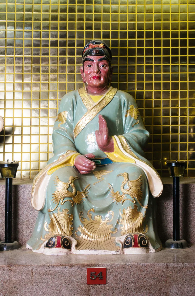 圓形的殿內,圍繞牆壁共有六十尊太歲神像,神態各異;有些手執法器,有些結上手印;斗姥元君安坐於座駕上,形象呈三目、八臂、三面,手執着不同法器。站在香爐旁的廟祝,正唸唸有詞:「七星五雷護兩旁,六甲神將到宮前,