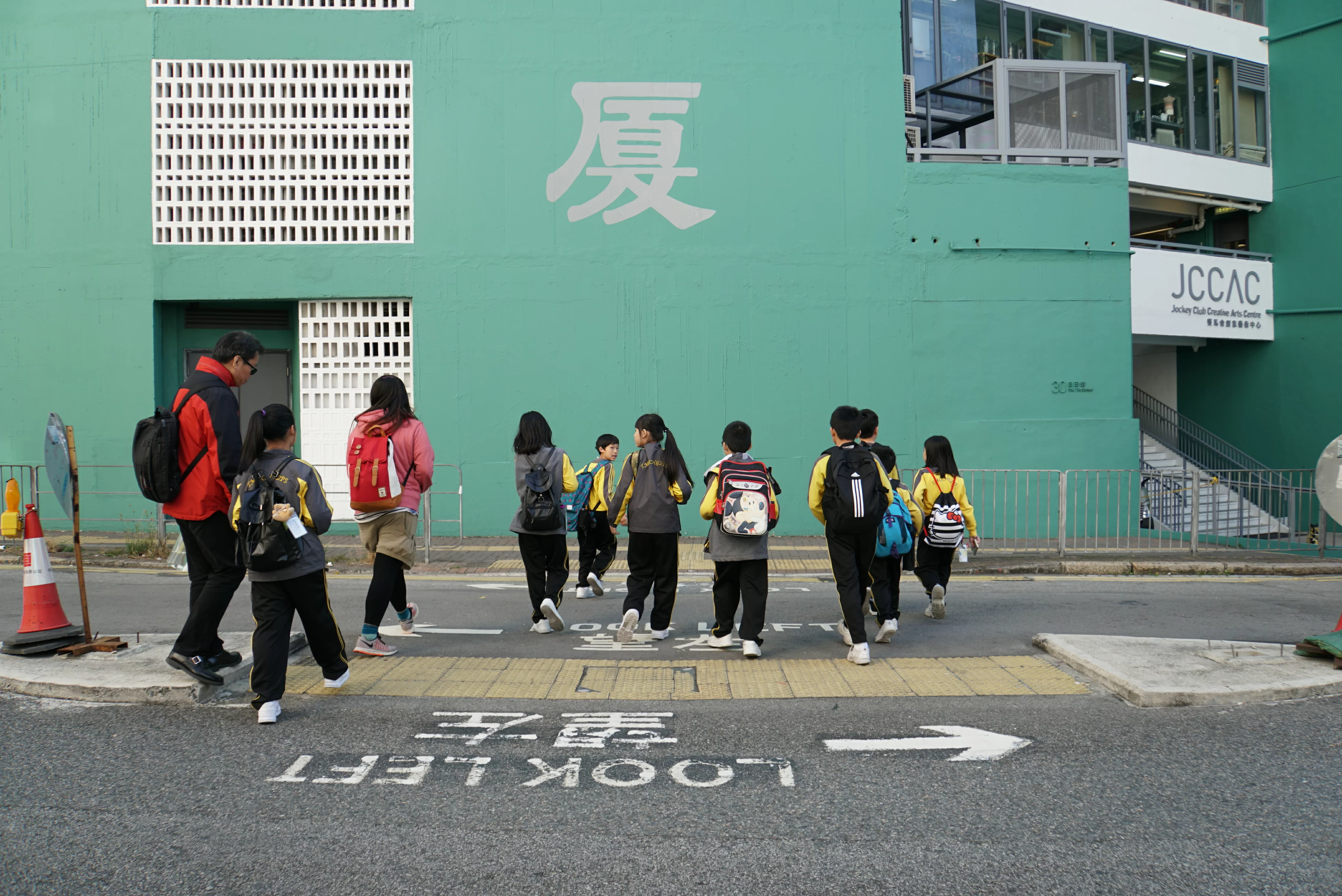 不過,要由學生帶隊。全班二十六人,分成三組,每組有一位老師和一位導師「被帶領」。8點半,大夥兒一起出發。朗熙與另一位男生左右護法般,拖着韓老師的手落樓,暱稱他「韓老爸」。