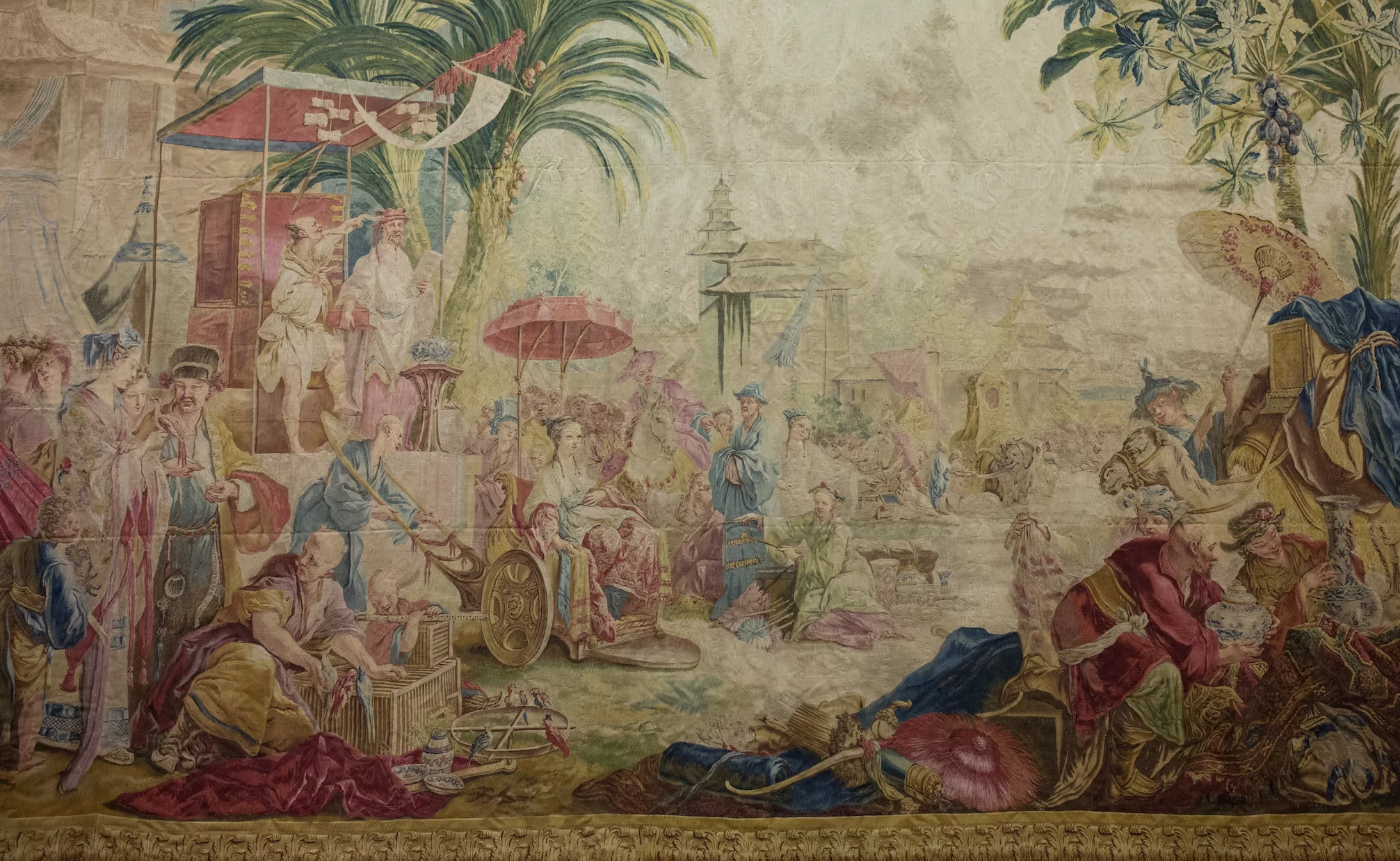 1766年的時候,路易十五委託博韋皇家織造廠(Beauvais Tapestry),按照首席宮廷畫師兼洛可可藝術的領軍人馬法蘭索瓦.布歇(François Boucher)繪製的圖樣,編織了十套以富有「中國風情」的巨型掛毯,當中四套納入王室收藏,其餘的則由貴族收購。