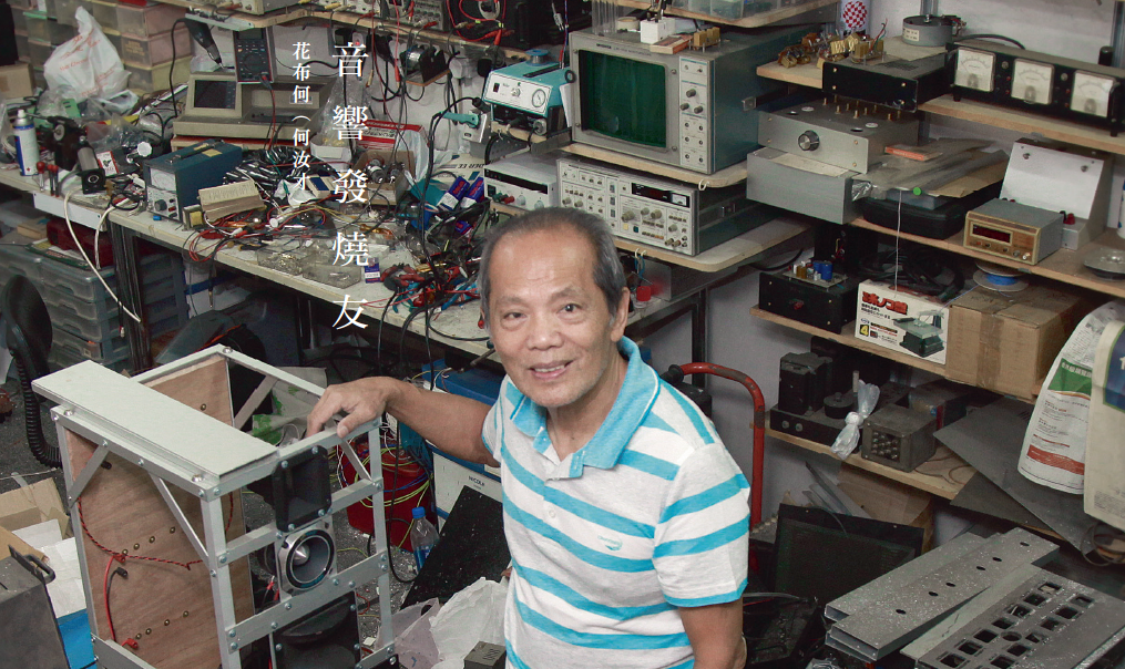 花布何原名何汝才,綽號跟他的喜好無關,全因他早年做花布生意起家。上世紀八十年代,何汝才專做服裝熨色加工的工廠,做出名堂,相熟朋友都叫他做「花布何」。九十年代本地工業北移,他放棄生意,搬到大埔富善邨開雜貨店,他說高峰時,每日賣出二千多條廁紙,一條廁紙利潤一蚊幾毫。近年自領匯接管後,他無奈捱貴租簽長約,數年前決定「愉快」結業,繼續尋找他最愛的音響夢。何汝才很早就在工廠大廈改裝音響室,與知音人鄭錦強師傅一起研究音響技術。「大半生人,工作是為了餬口,現在要為興趣而做事。」
