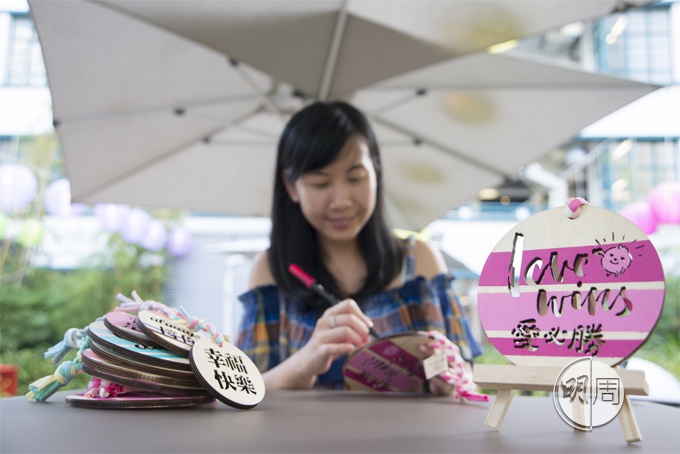 Jenny現職室內設計,同時也是註冊催眠治療師,有感接受治療的個案都有許多負能量,她決定製作一塊簡單的木牌,在牌上寫上最簡單的信息,只希望提醒人們生活中最容易忘記的信念。「愛是平等,人人都可以愛對方,只不過每個人對『對方』的定義不同。愛的感覺不會因為對方的性別而改變。」