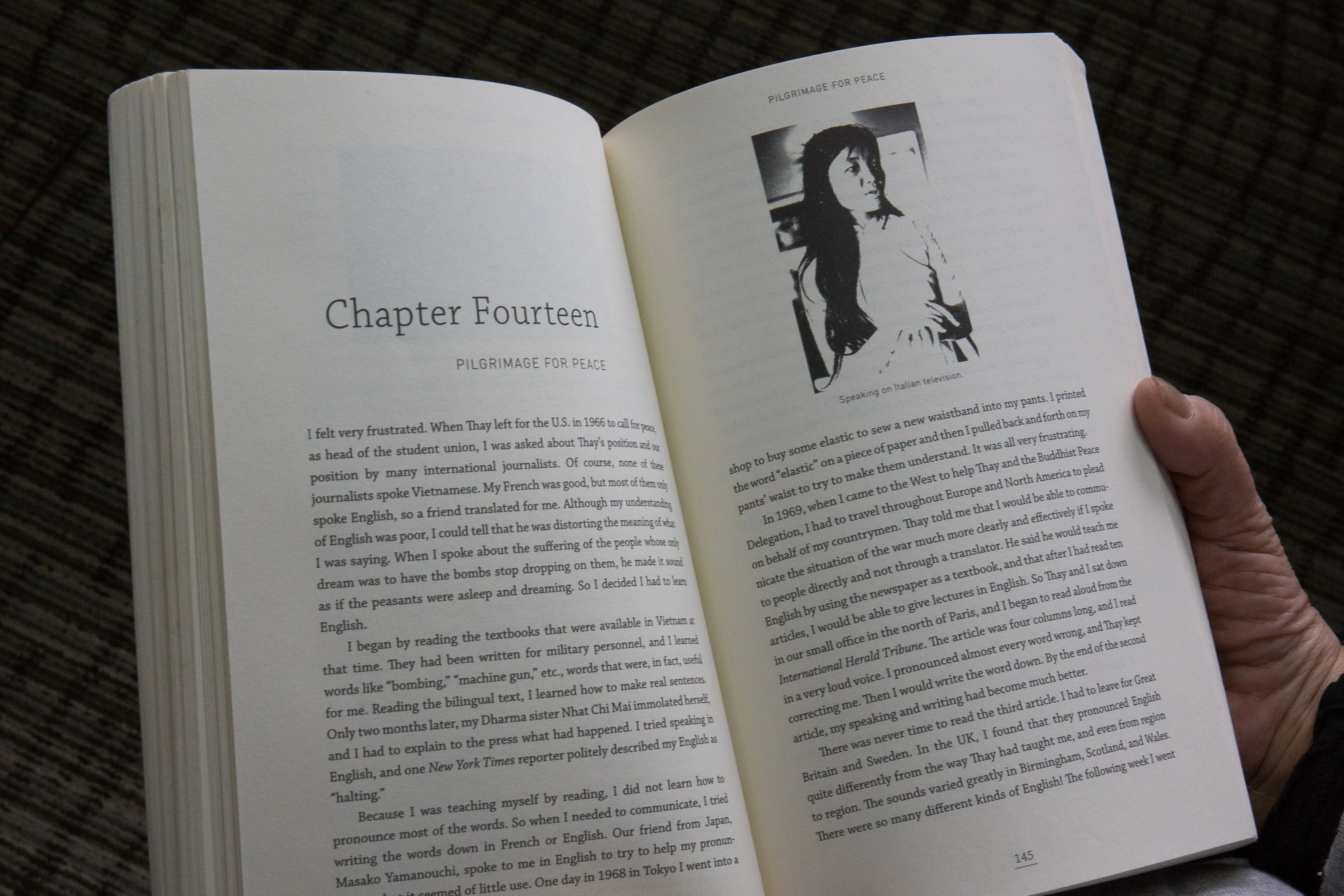 「這本書是約七、八年前江瓊珠寄給我的,她跟我說,你常形容自己波瀾壯闊,這才算得上是波瀾壯闊呢。於是我放在牀頭,不時翻看。作者Sister Chân Không是一位越南的尼姑,是一行禪師的徒弟,她憶述幾十年來修道、救人的經歷。如今八十多歲的她,學生時已開始在越南戰爭裏擔任社工,然後成為佛教徒。戰爭期間,她為貧窮的學生教學。當炸彈來臨,她亦在醫院裏奔走救援。