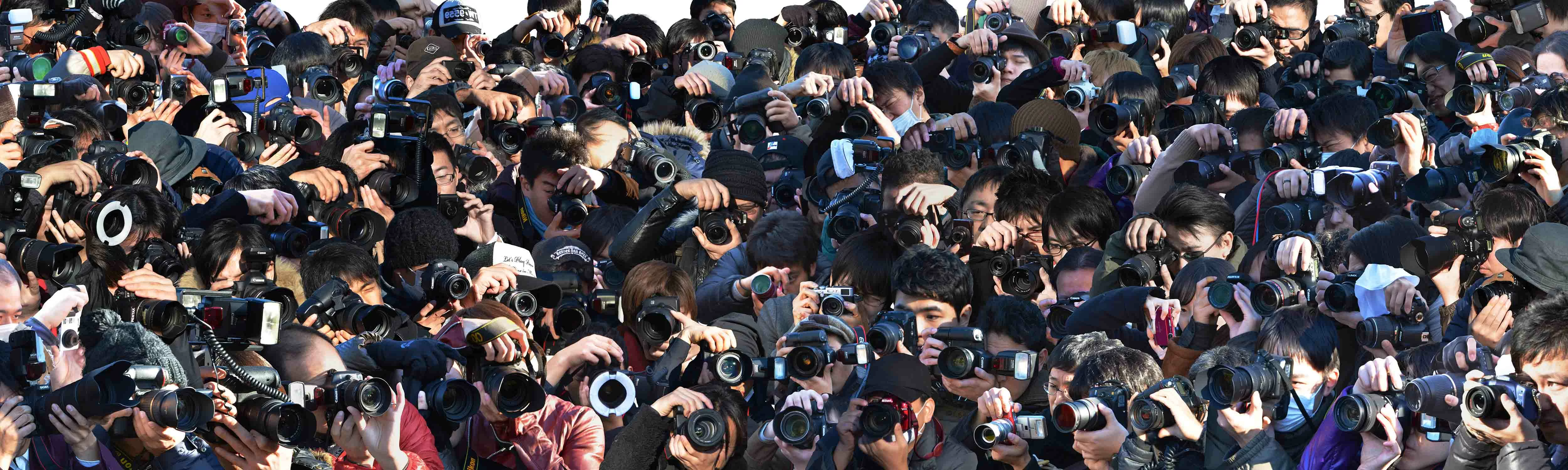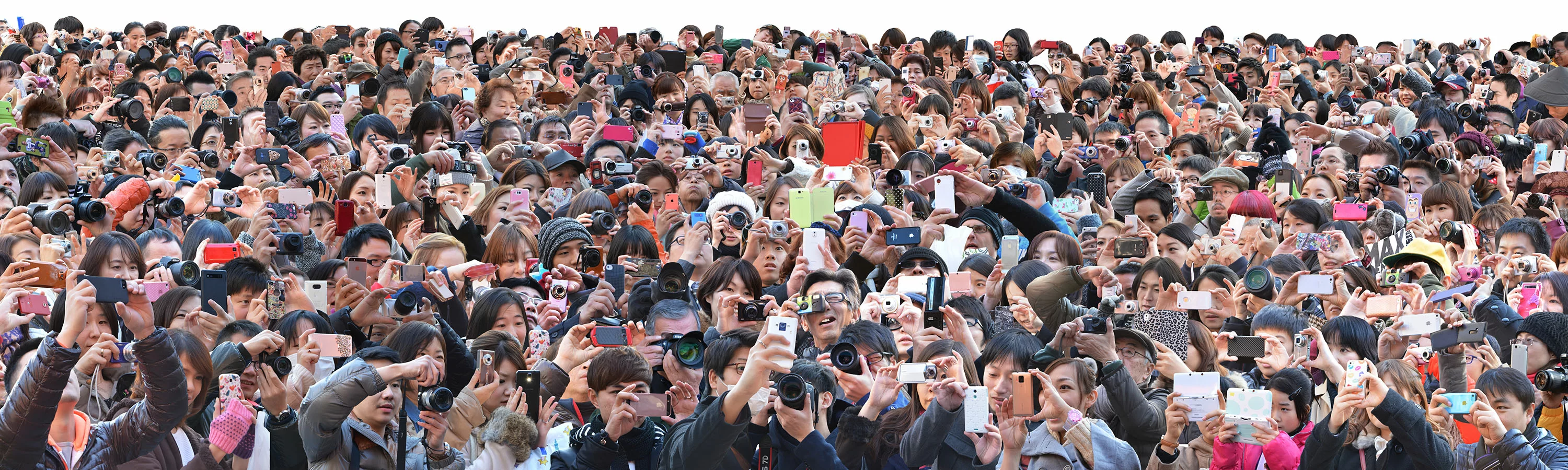 擁有智能手機是潮流大趨勢,而高舉手機拍照,也已成為生活中的一部份。無論是稀有的藝術品、醉人的風景,還是宏大的建築,在細心欣賞它們之前,我們總要隔着手機的屏幕,按下拍照鍵,才會心滿意足。即使是桌子的美食,也躲不過每人輪流拍照的攻勢,折騰多番,方能真正享用饕餮盛宴。日本的建築及設計師Tomotosi亦發現到此現象,便開始拍攝不同地方裏正在拍照的人群。一堆相似的動作,最後變成了一幀有趣的風景。