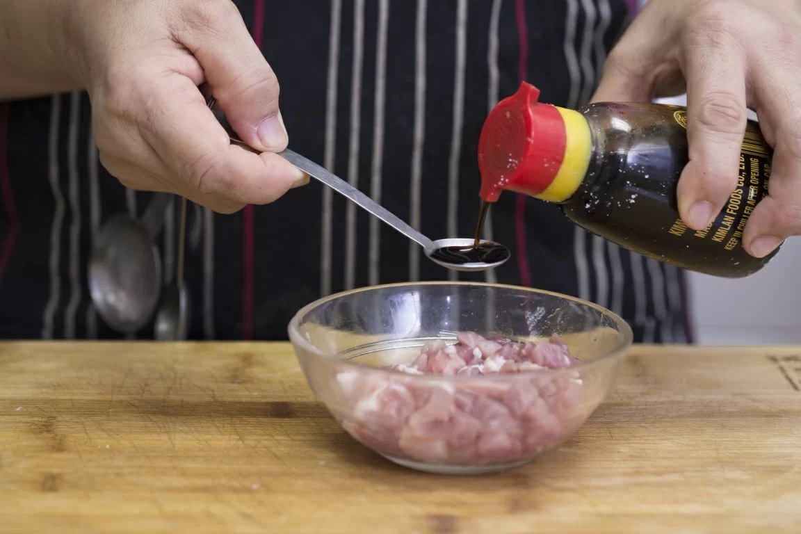 醃料:生抽1湯匙,薑汁1茶匙,糖1/4茶匙,生粉2茶匙,胡椒粉及麻油適量