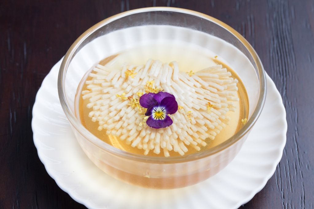 取名龍麵館,顧名思義,館子以歷史悠久的麵條為主打。設有專人於廚房裏不停打麵,打的是柔韌度高的蘭州拉麵。像推薦的龍肉拉麵,湯頭以龍蝦殼和蝦膏伴上湯熬煮五小時,湯濃味鮮,啖啖精華,配上波士頓龍蝦肉,味道非凡。意念創新的還有龍蝦蘿蔔酥,蘿蔔酥不見蘿蔔,原來另有乾坤。說是蘿蔔酥,其實取的是形態,廚師以本地「青龍」做餡,起出龍蝦肉,混入馬蹄和芫荽焗製成酥餅,橙白酥皮相間,手工精巧。