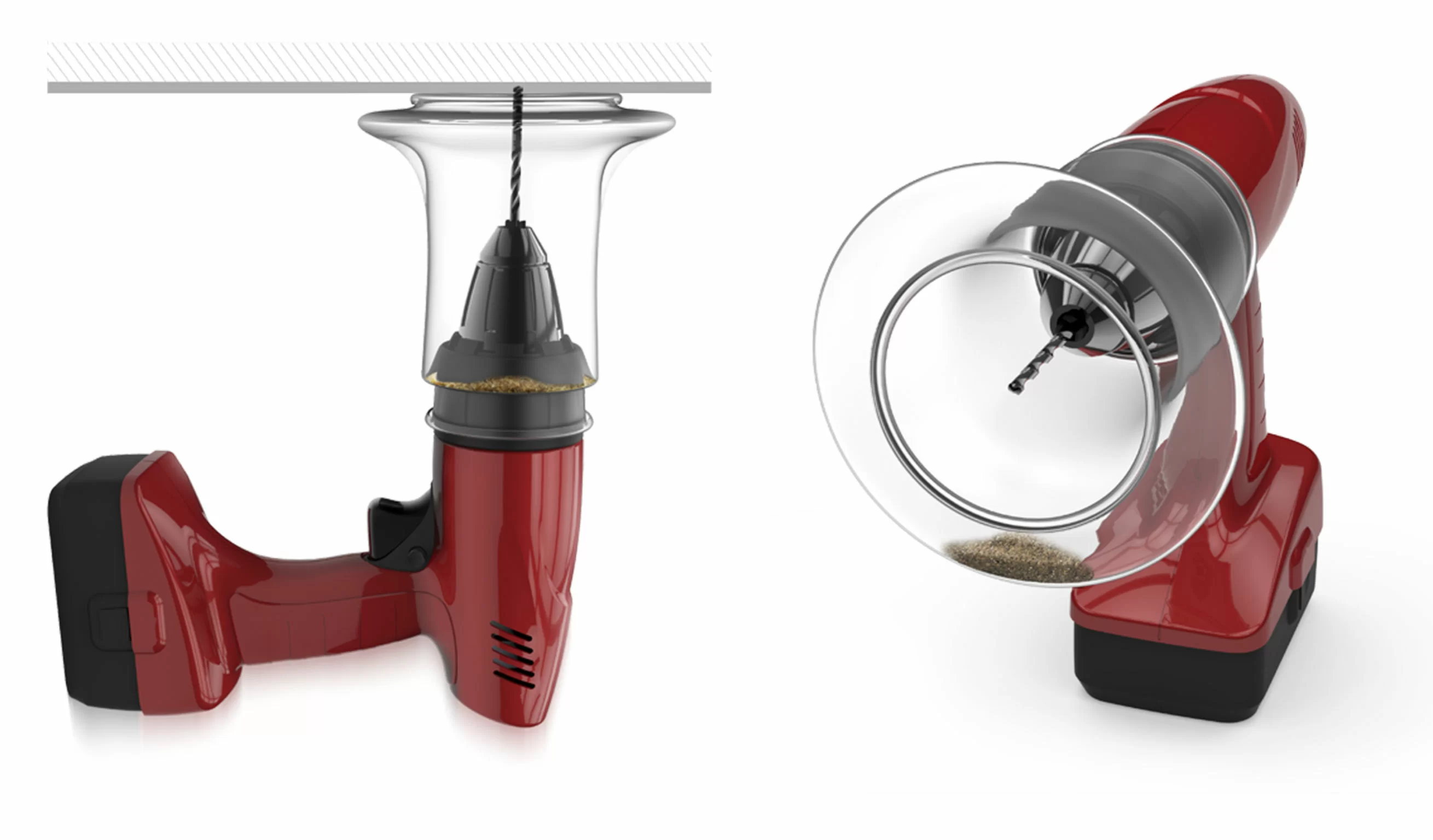 而塘鵝塵埃收集杯則是一個帶有兜狀的彈性塑料罩,用電鑽鑽孔之前,套在電鑽上,即可防止灰塵散落,設計簡單卻輕易解決令人頭痛的問題。實在令人期待這個年輕人下一個創新設計。