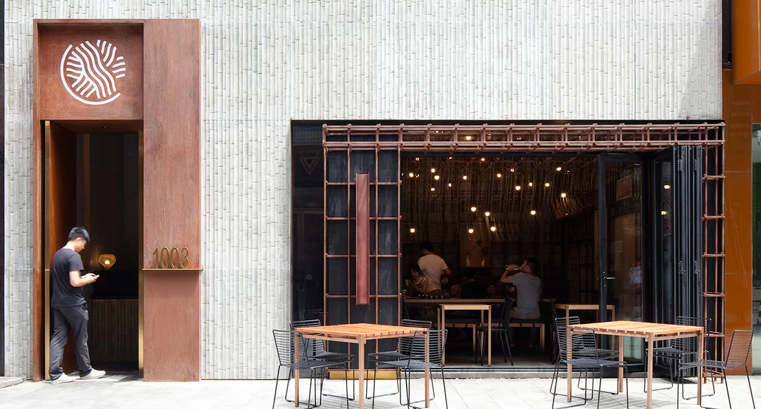 建築師韓文強在2010年創辦建築營設計工作室(Arch Studio),擅長舊建築改造。2015年他將北京舊胡同改造成胡同茶舍曲廊院,獲得當年台灣TID商業空間獎項。他將北京隨處可見的一個450平方米L型四合院,在屋簷下加入扁平曲廊,將分散的建築連成一體,並用玻璃幕牆劃分三個弧形小院,將竹林景觀和舊建築投射到茶室之中。曲廊鋼結構代替局部舊建築腐朽木材,達至新舊融合。
