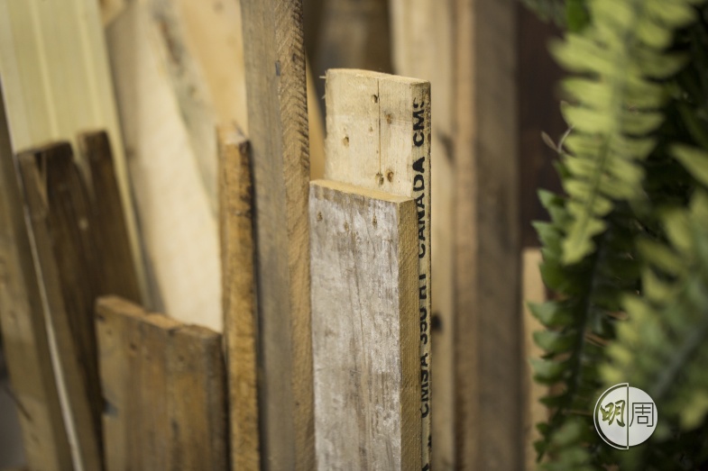 他們的工作室位處工廈,環視數百呎的空間內,放滿不少物資,最多的是從附近回收得來的卡板,Emad回想,每次身水身汗搬回studio後,都要逐塊卡板起釘拆開成木條,打磨刨得光滑、上色,不但可以用來做簽名板、佈景板,也可製作背景板上的人名字樣,「木製人名可以升級再造為時鐘,在新家中報時。」他們笑言,工廠區真的什麼物資也能執到,古董花瓶、中式屏風、畫框、紅酒箱,不少都相當新淨,略施小計便能變化多端,地盤棄置電線轆可以變成木桌,甚至連打風後的斷木樹枝都可以作為裝飾,令婚禮變得田園風格。