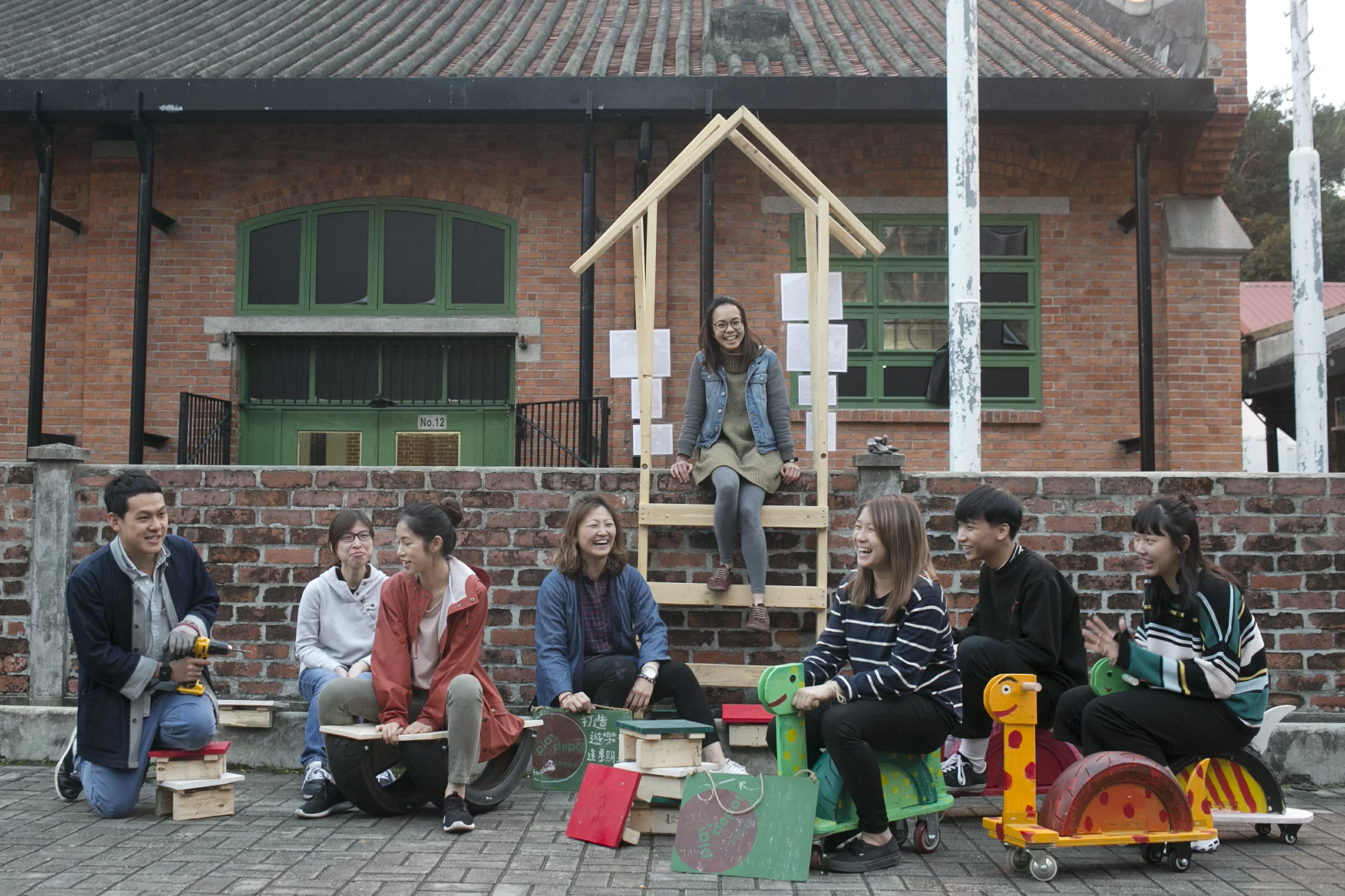 有人設計了長長的滑梯、屋型爬行架。參加者之一的Erica把兩個半圈車軚配上木板,打算把兩側接連在一起製成另類搖搖板,她認為小朋友最喜歡有離心力的遊戲,搖搖板就是入門級,這款搖搖板要兩人坐上去一起玩。