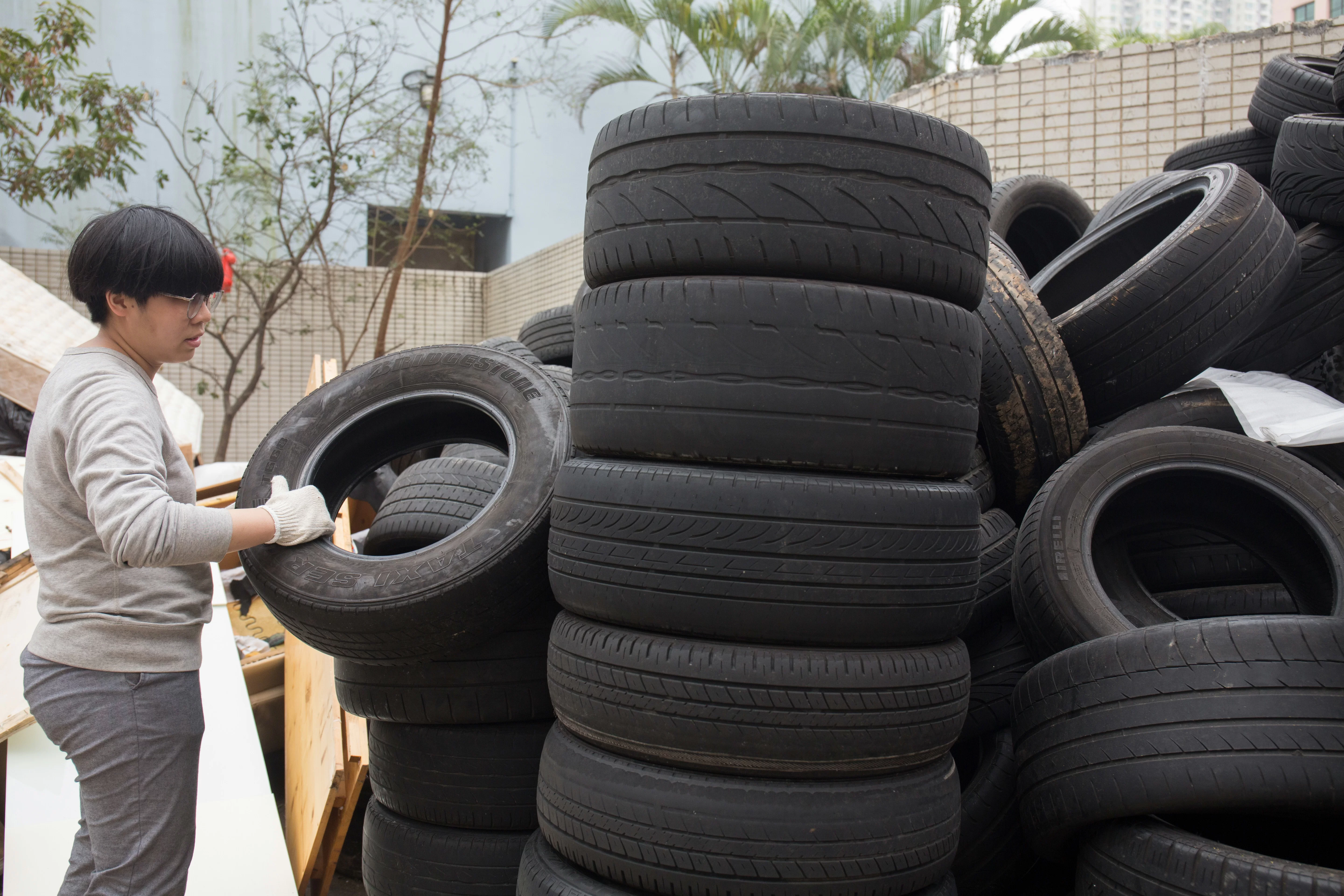 另一邊廂,他們將遊樂場由公園延伸至牛棚藝術村,與公眾自製遊樂設施,參加者中不少是大學生,第一件事,竟是去垃圾房收集物資,「看一個地方的垃圾,可以觀察到這裏人的生活。」阿棠說,土瓜灣的垃圾房,最多的垃圾有三類:舊傢俬、車軚與建材,由於區內劏房戶多,每當住客搬屋,舊傢俬便被扔棄;區內也有不少車房,所以車軚定期更換,舊車軚更堆積成一座「車軚山」;加上舊樓被清拆,新樓落成,竹枝、泥頭等建材垃圾頗常見。