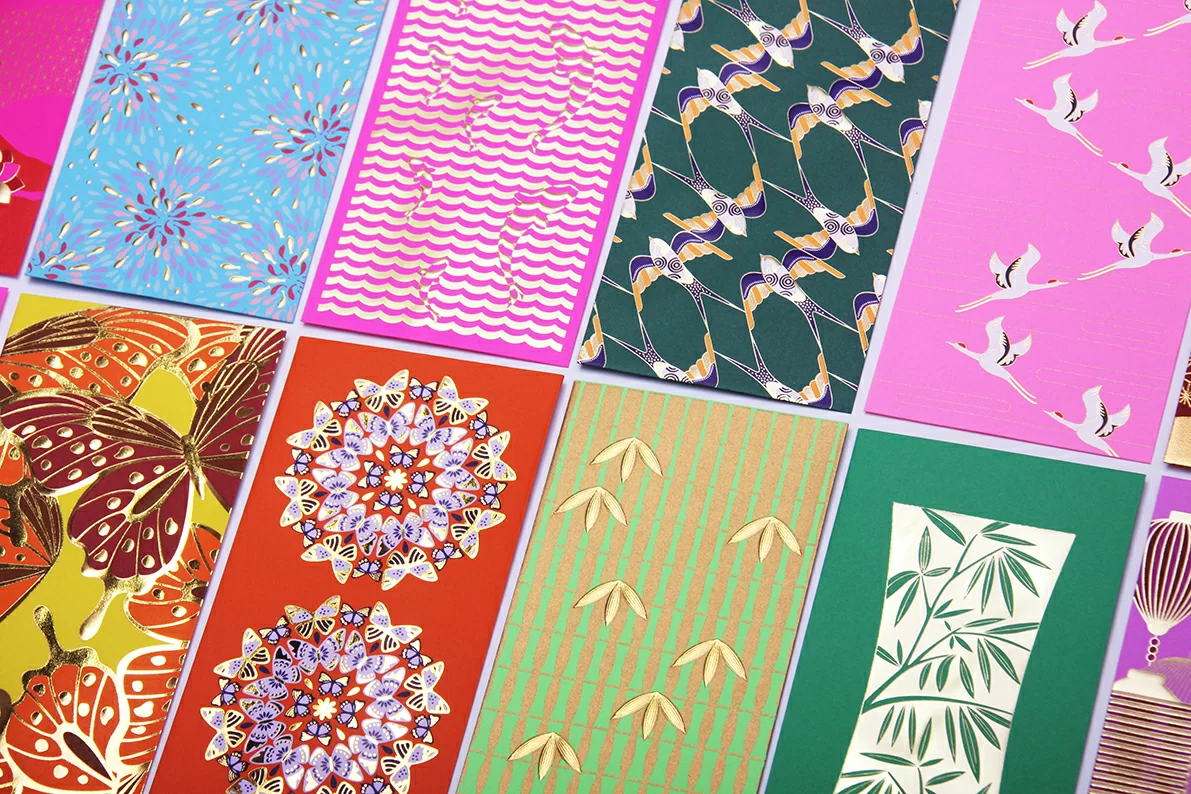 「萬象」利是封禮盒共有十六款圖案(各兩張),送禮收藏皆宜。