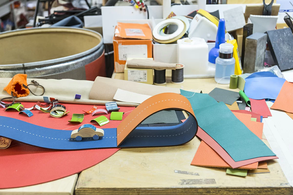 皮包的金屬扣竟可以變成木玩具車頂,而被裁剪剩下的皮革就能變成路軌,創意沒有邊界。