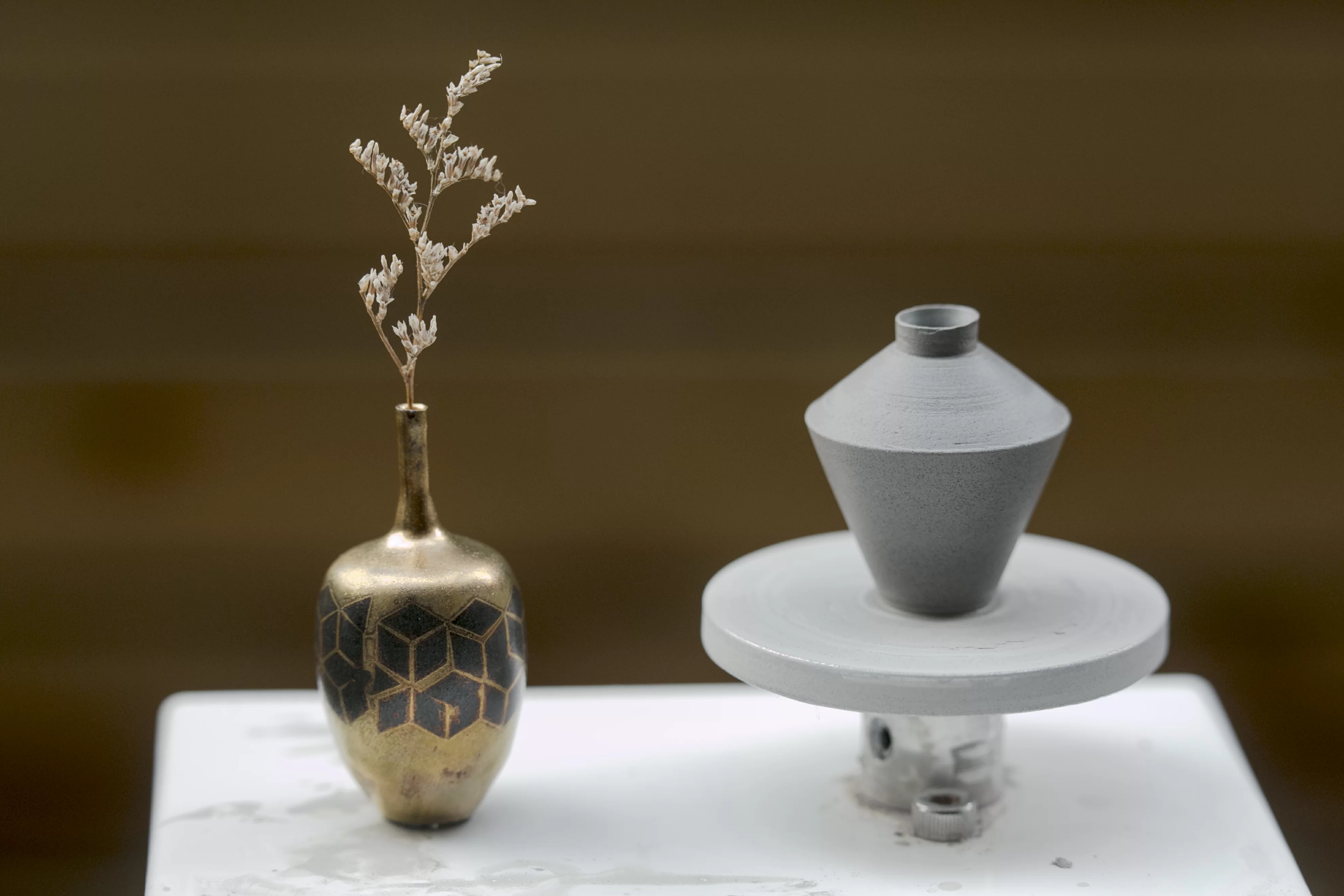 所謂差之毫釐,繆之千里,陶藝是一門結合黏土、雕塑、釉彩、火溫和時間的藝術。「首先是塑形,等它自然風乾,放入窯裏進行首次燒製,然後上釉,再放入窯裏燒……每件陶器至少經過兩次窯燒,例如24K金的,就要再燒多一次。」雖然袖珍陶器的製作原理和一般的相若,但事實上,製作一件袖珍陶器,要比正常尺寸的要困難和複雜得多,他舉例,正常大小的陶器徒手一拉便成型,但要製作圓周僅一毫米的瓶身,就要利用細小的工具慢慢精雕細琢,哪怕只有些微的失誤,都會前功盡棄。