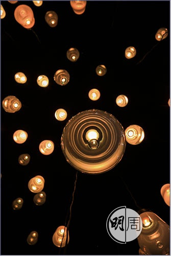 它正是由日本知名多媒體創作藝術團隊teamLab創作,名為《Forest of Resonating Lamps-One Stroke》(共鳴燈森林),團隊在2001年成立,由藝術家、工程師、CG動畫師、建築師等跨界別成員組成,共有四百人,陣容龐大,去年首次為M&O創作《Floating in the Falling Universe of Flowers》,倒吊花海很浪漫,也曾為香港商場創作巨型的聖誕許願樹,其Communication Director工藤岳解釋,整片燈海足足花了四日佈置,用上約六百多盞意大利盛產的Murano玻璃LED燈,乳白色燈飾接連了地面、牆上的感應器,每當有人經過,便會亮燈,紫、藍、粉紅等等九種色彩,特意調校成較柔和光度,沒有一刻的影像會重複。