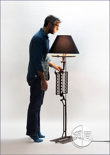 Barrak Naamani來自黎巴嫩,他把自小陪伴成長的腳踏衣車重新組合,參考人體動作,鑄造成座地燈。(圖二)
