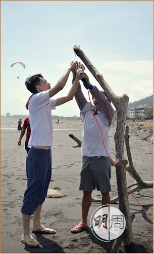 中午時分,烈日當空,餐會負責人楊宜菁一邊遞上防曬袖袍,一邊解釋,原來受早前颱風影響,海灘本來是一片狼藉,他們一早前來收拾和佈置,才清理出一處平地。隨浪飄上岸的浮木和椰殼是唾手可得的材料,曬得黝黑的年輕人就地取材,佈置場地,築起舞台。在海邊開枱吃飯,看似浪漫,其實一點也不輕鬆。