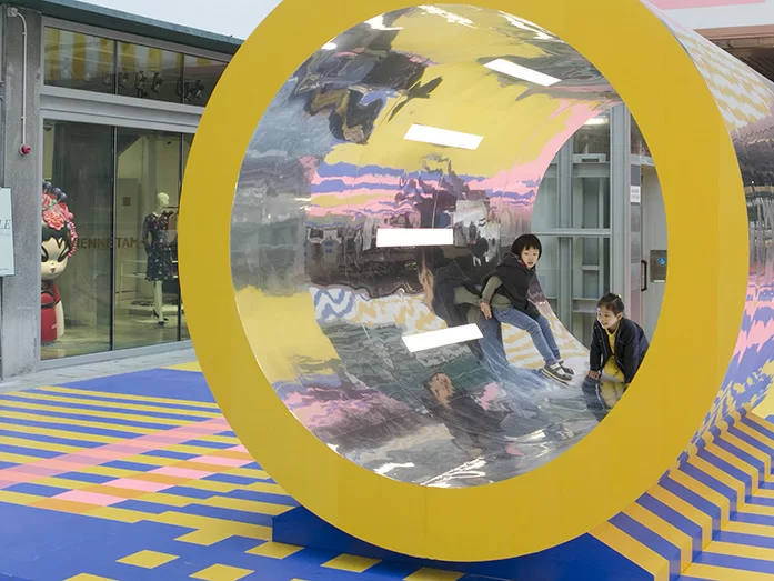由LAAB設計的PMQ紙膠帶中庭,吸引到不少小孩遊玩。