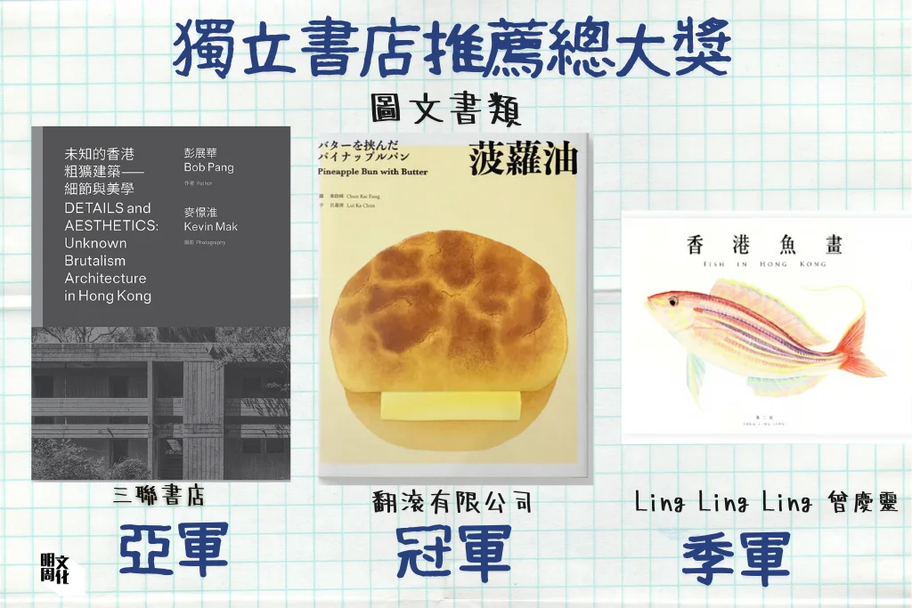 獨立出版社「字字研究所」成為大贏家,出版作品共獲四獎,其中《沉埋的粵菜檔案》一書更在三項類別中獲獎,包括「獨立書店推薦大奬」亞軍、「非虛構類」冠軍以及「書籍設計」季軍。