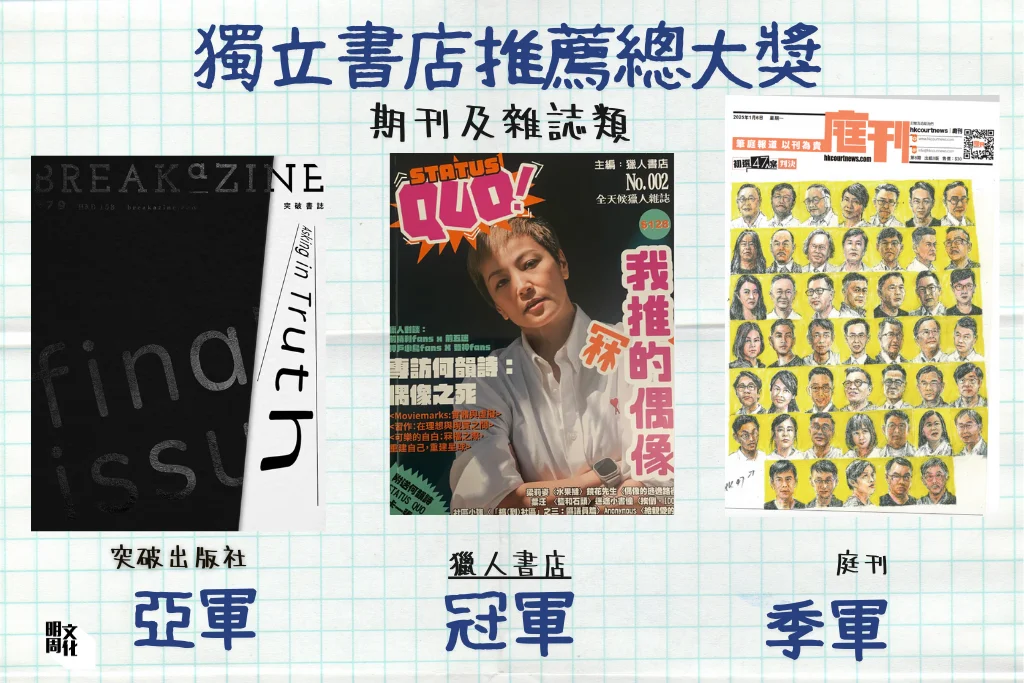 首屆「獨立書店推薦賞」於一月二十六日舉行頒獎禮。十九個獎項獎項由來自二十間獨立書店的四十四位店員選出。