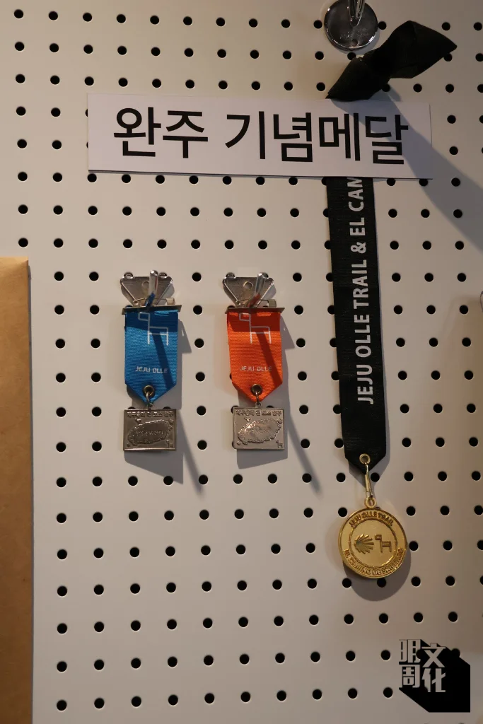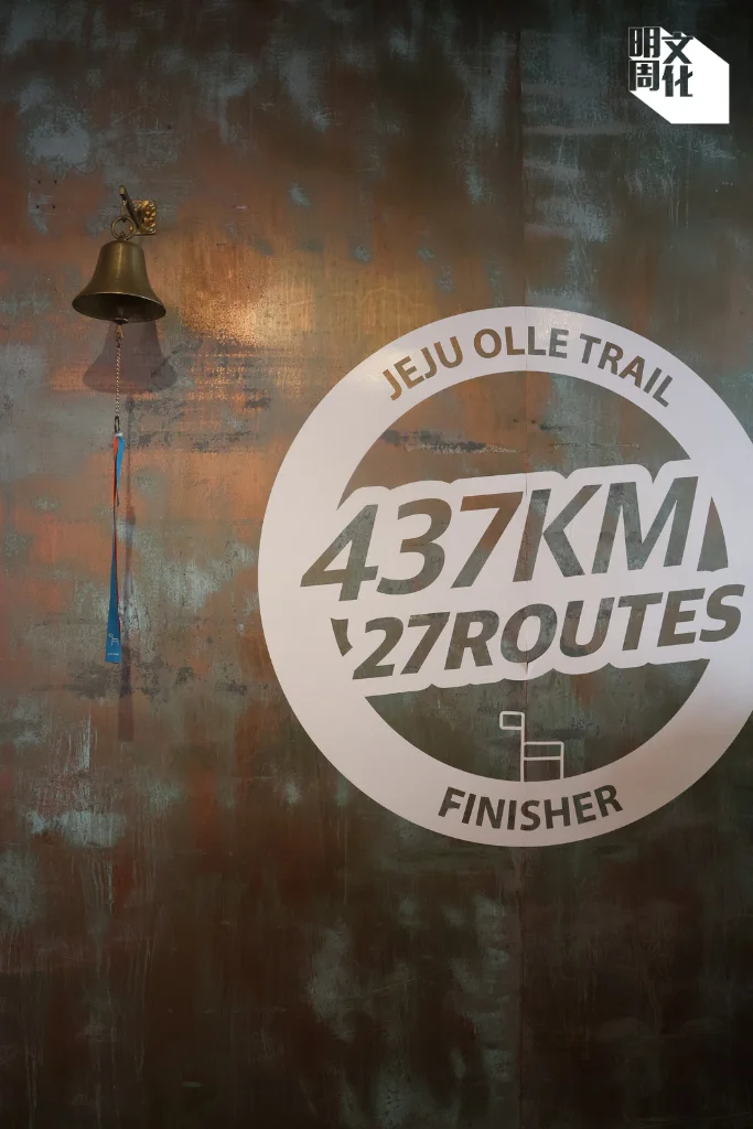 黃昏時分,濟州偶來旅客中心的咖啡廳裏,聚集了剛結束步程的徒步者。他們或閒談小憩,或分享見聞,人群中有年輕的外國臉孔,也有精神矍鑠的韓國長者。旅客中心內陳列著獎項,專為成功走完全長437公里「偶來小路」的徒步者而設。