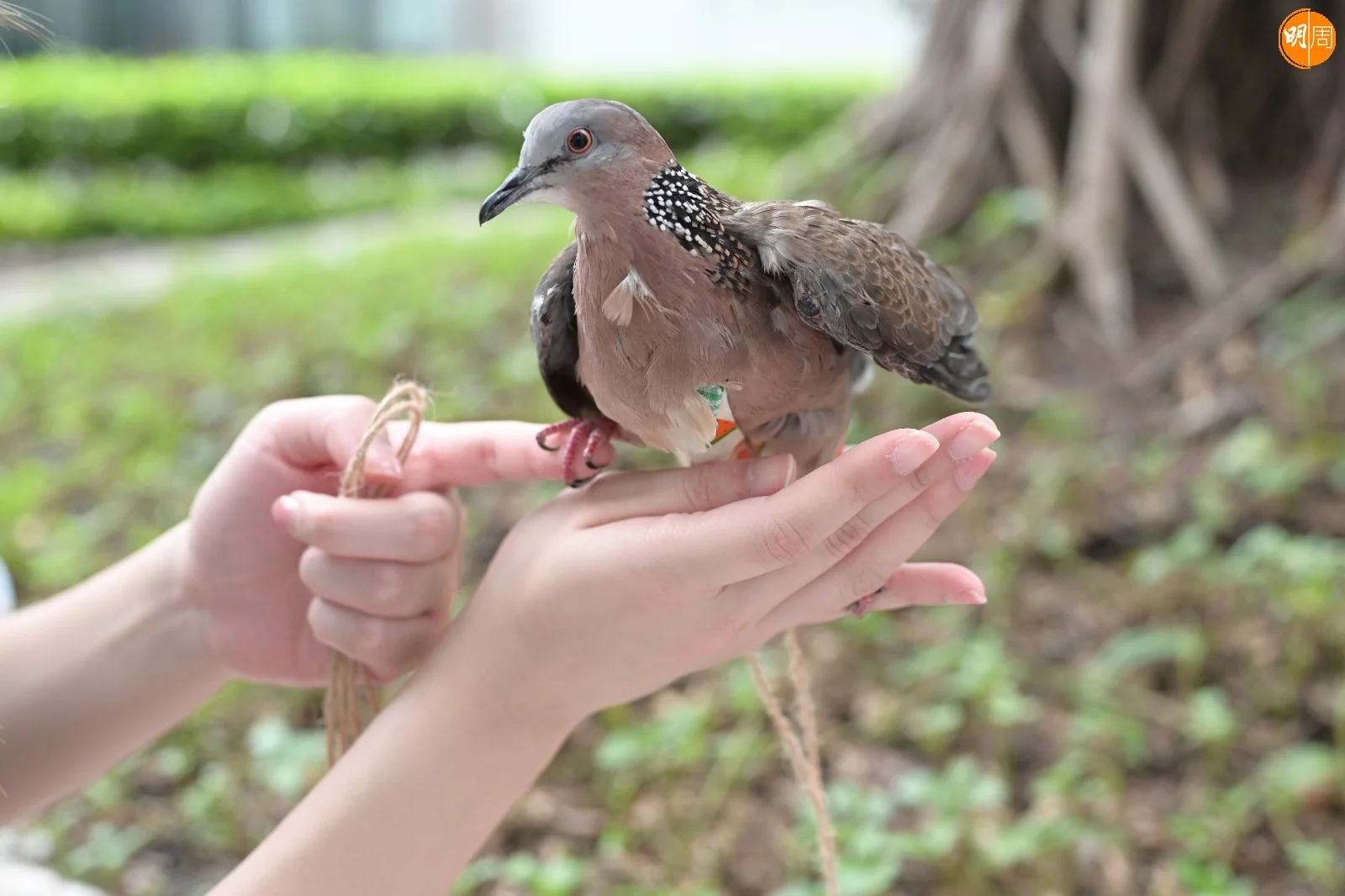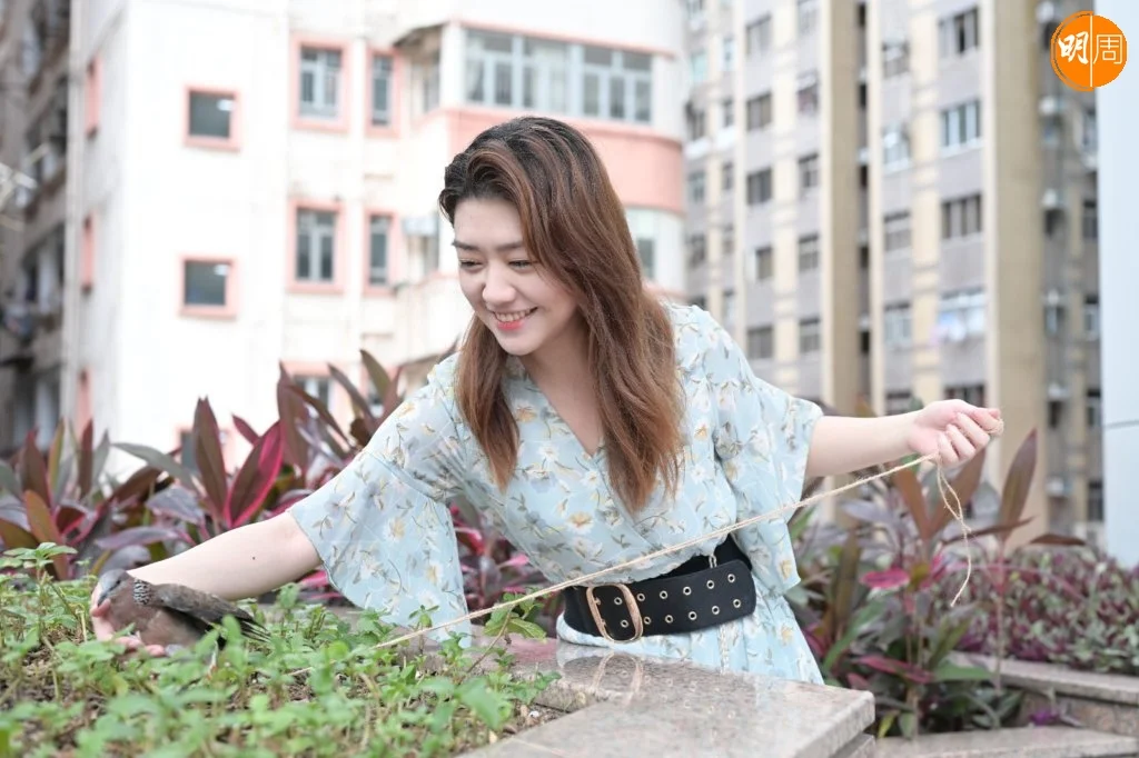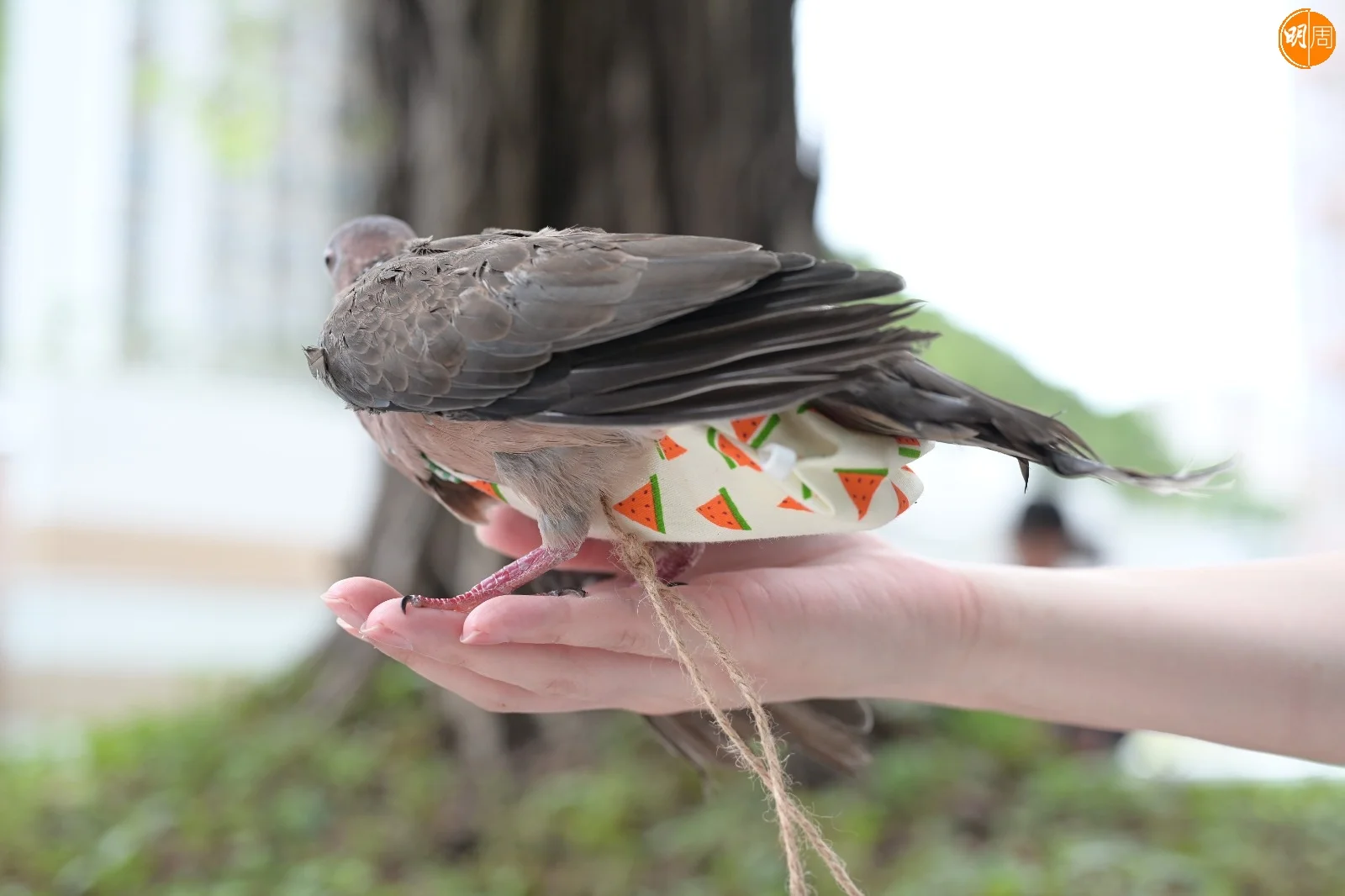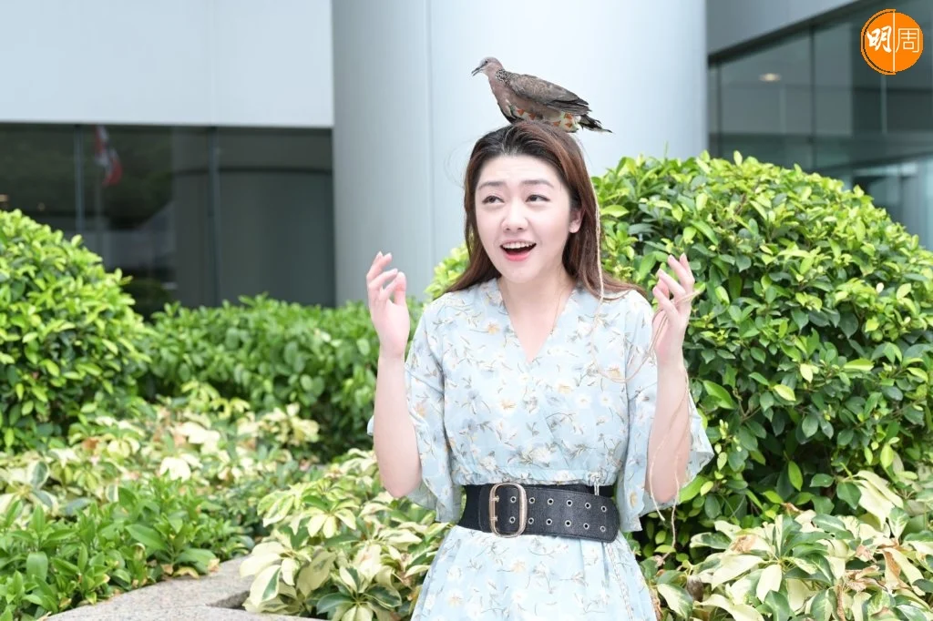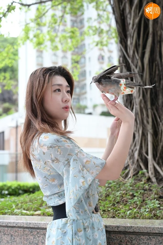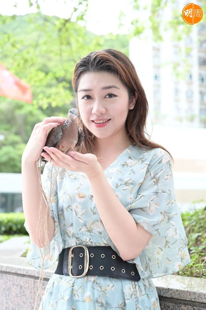 廖倬竩(Ivy)半年前經義工領養了一歲多的珠頸斑鳩荳荳,原本生活於大自然的荳荳,因不慎由樹上跌下,導致翅膀骨折,幸遇上雀鳥義工救治,但無法重回大自然,變成寵物鳥,一歲半的荳荳最愛在Ivy頭上休息,「牠已經把我頭頂當作是一個現成雀巢,可能質感像草,是牠們喜歡的感覺,雖然我是牠主人,但其實似保母比較多,因為我完全控制不到牠,每日當牠離開籠的一刻,牠想點就點,有時候會飛上我頭頂,有時叫極都不理會我。」荳荳小時候因不慎從樹上跌下來,幸好遇上雀鳥義工,得到醫治,最後因義工移民,令Ivy有機會領養牠,「荳荳細時從樹上跌下來,剛好救援鳥類的義工經過,救了牠,發現牠跌得很慘,兩隻翅膀都歪了,帶牠去看獸醫,原來翅膀已跌至骨折,無論怎樣修補都無辦法完全康復,所以牠沒有能力再重返大自然生活,後來因為義工移民台灣,需要尋找人去領養家中的雀鳥。」