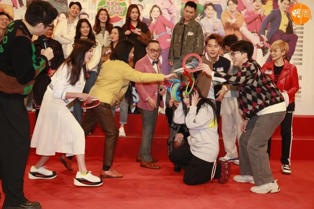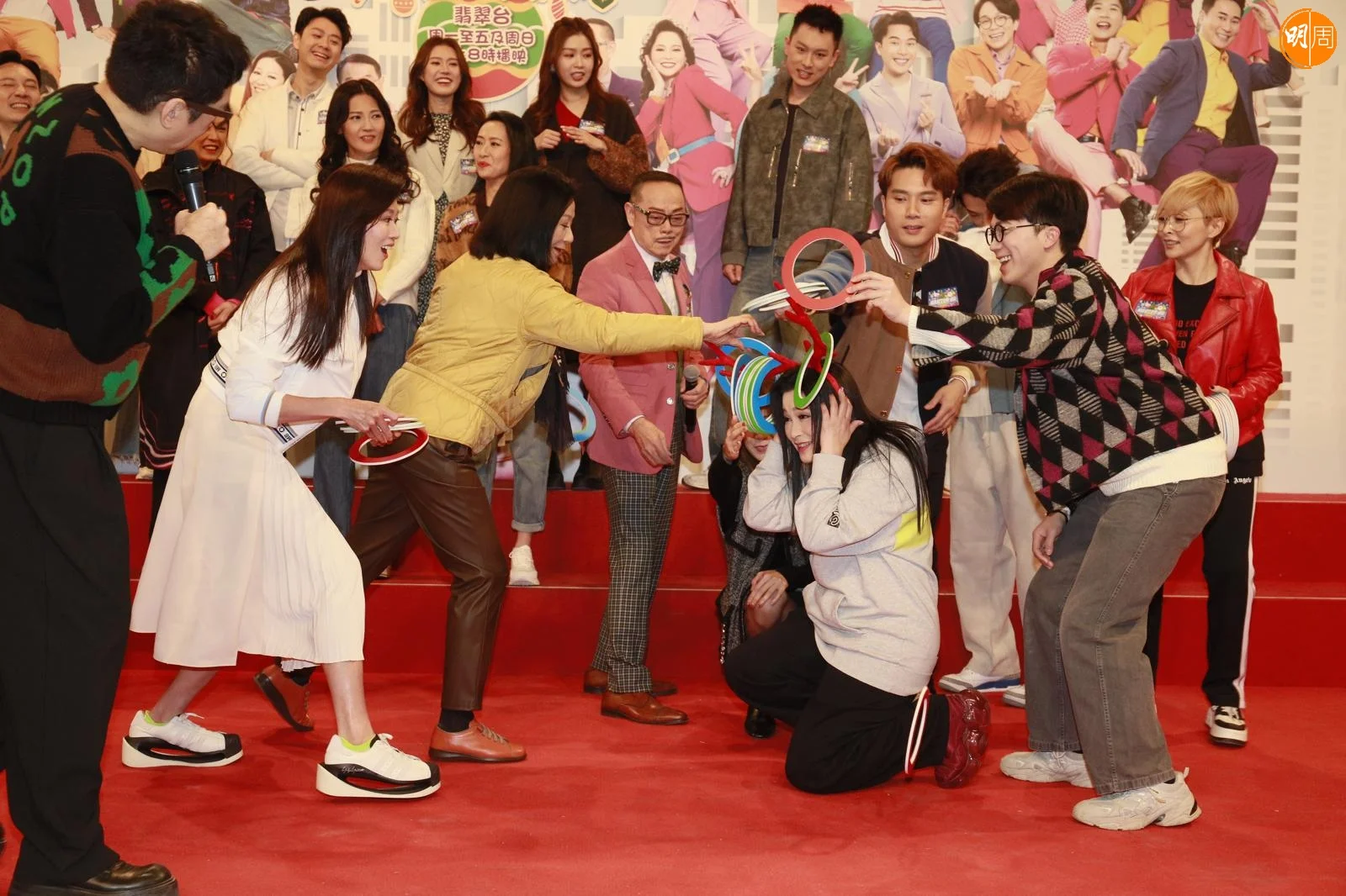 劉丹、湯盈盈、周嘉洛、吳偉豪、滕麗名、呂慧儀、古佩玲、單立文、樊亦敏、林淑敏、袁文傑、許家傑、林凱恩、羅樂林、焦浩軒、陳浚霆、李偉健、張景淳、葉蒨文、歐瑞偉、楊明、何晉樂及監製林瑋澄今日(19日)出席無綫處境劇《愛.回家之開心速遞》宣傳活動,近日在劇中飾演「Liza」的姜麗文及飾演「高小姐」的甄采浠相繼宣布離開無綫,監製林瑋澄在會上宣布自明年1月6日起,會由每周播映6集變為5集。
