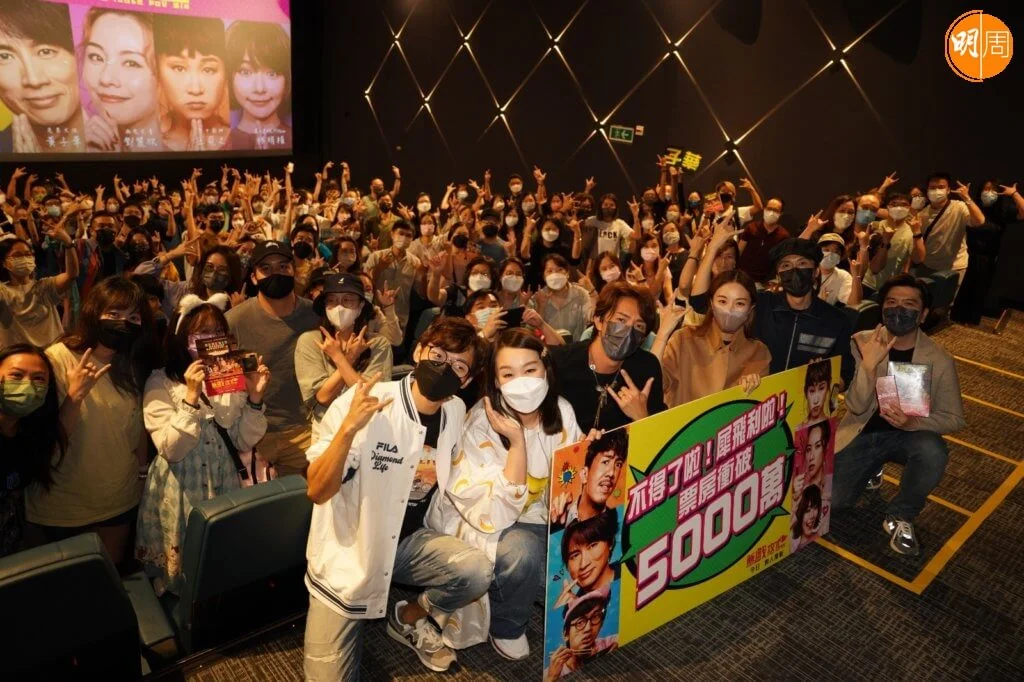 剛完成50場舞台劇的黃子華,昨天(2日)終於與《飯戲攻心》團隊包括導演陳詠燊、鄧麗欣(Stephy)、張繼聰、王菀之及陳湛文,加上身處外地,透過視像通話現身的林明禎,首度齊人到戲院謝票。電影截至今午(3日),累積票房逾$5268萬元,打破2008年周星馳《長江7號》創下的紀錄,暫列史上港產片喜劇第四位,港片第12位紀錄。