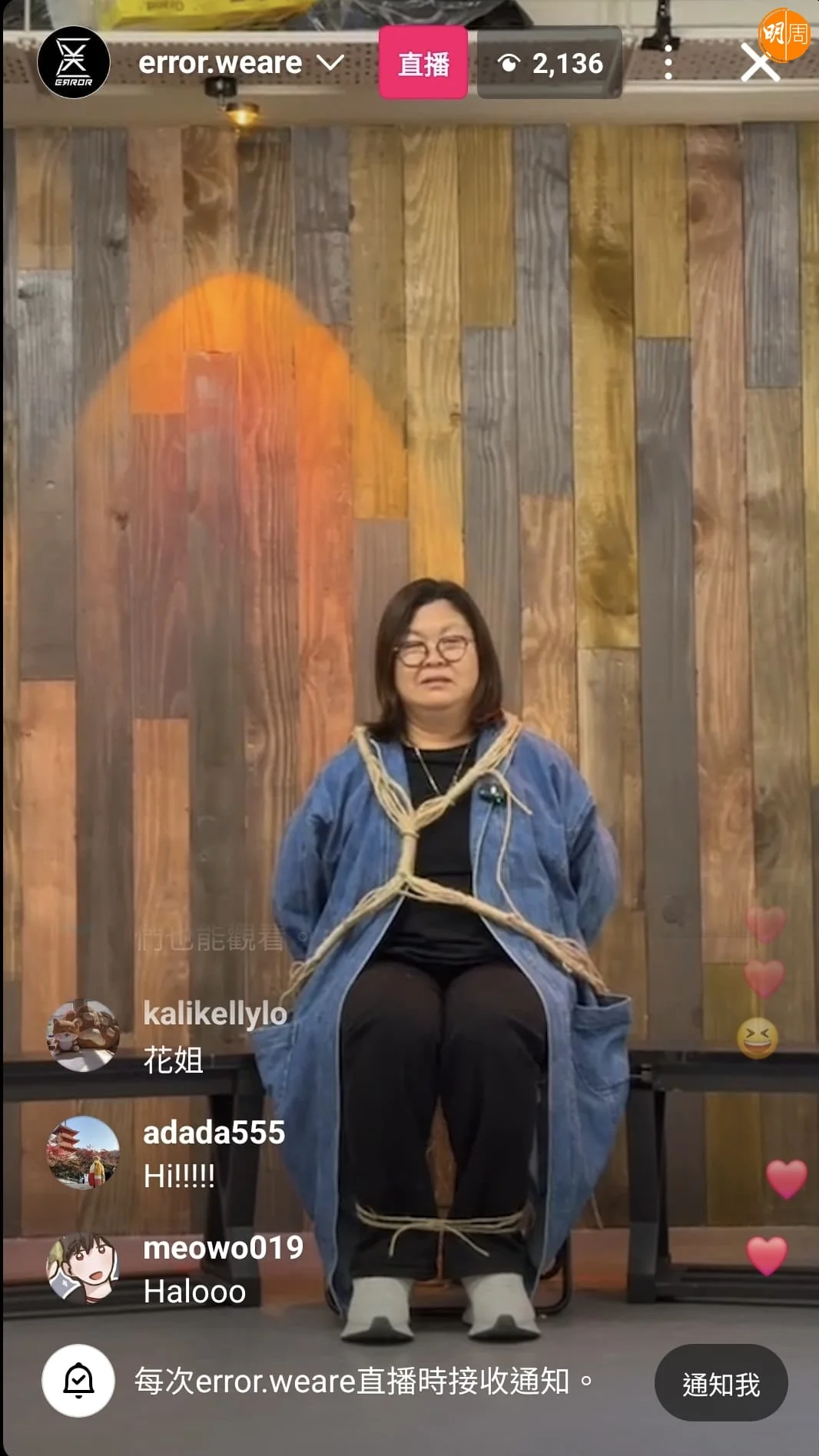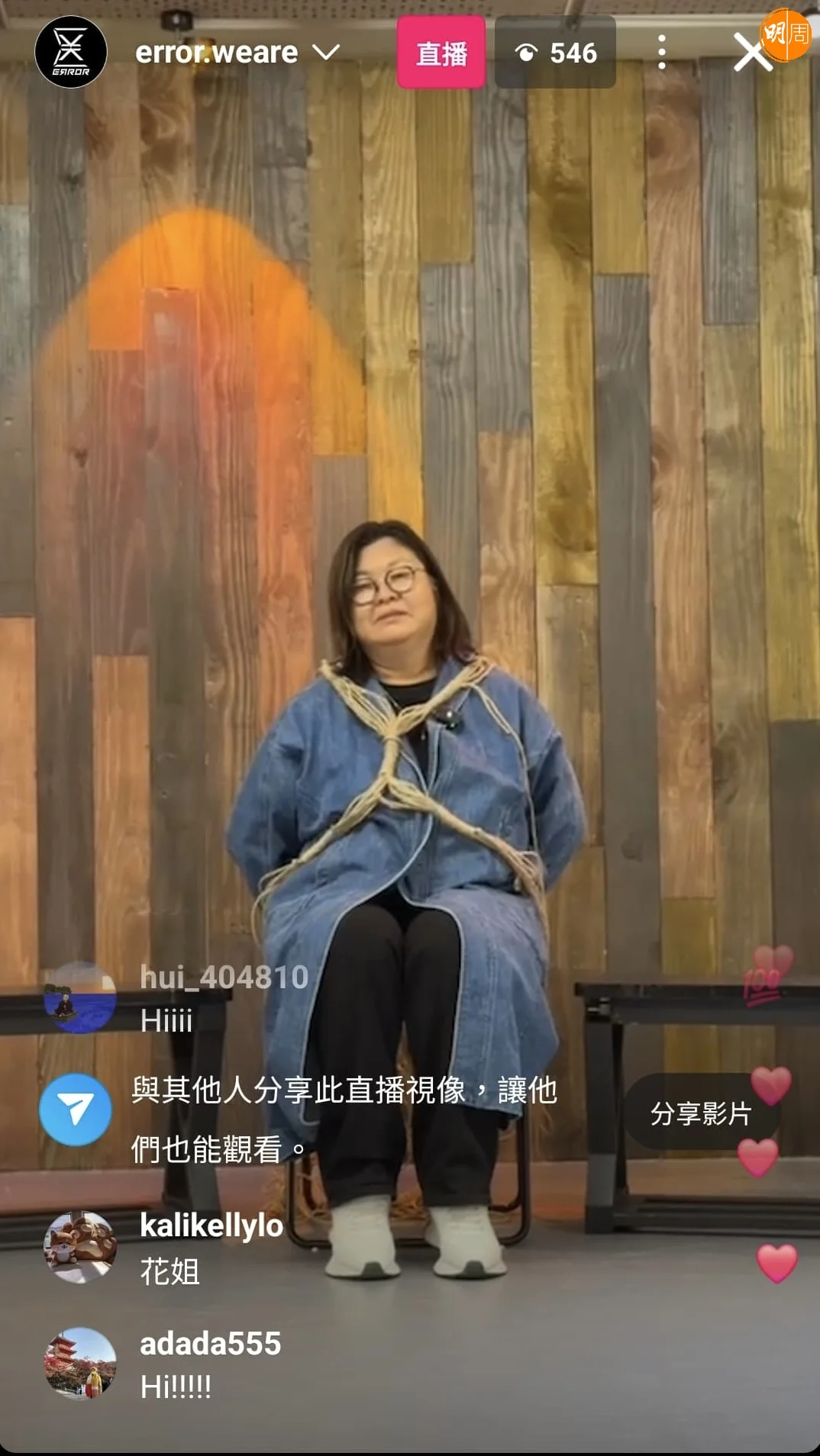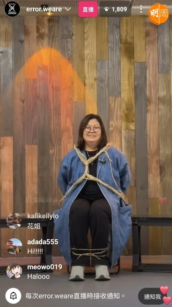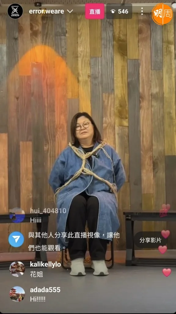 ERROR事隔兩年,宣布明年1月25日再次開騷,舉行Live Show《Katch音樂娛樂平台呈獻: ERROR “WHAT’S GOING WRONG??” 2025》,演唱會門票已式開賣,ERROR四子為了谷飛博加場,昨晚開live跟粉絲互動時,驚喜出現! 他們竟然「綁架」花姐到場,Re-U《花姐ERROR遊》,五花大綁的花姐身上的麻繩明顯縛得很鬆,但配四子的嘴賤,笑料百出,唔少得當然仲有大家期待花姐鬧人畫面。