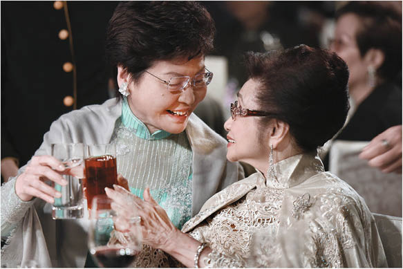 特首林鄭月娥去年到仙姐家賀壽,今年就陪壽星出席壽宴,林太形容仙姐是藝壇瑰寶,對粵劇藝術創新的精神,投入的工作態度是大家學習的榜樣。