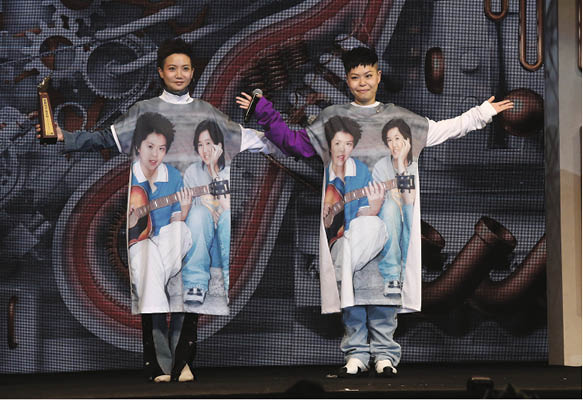 剛舉行演唱會的at17,當晚亦得到叱咤十大,孖妹以特別造型上台。