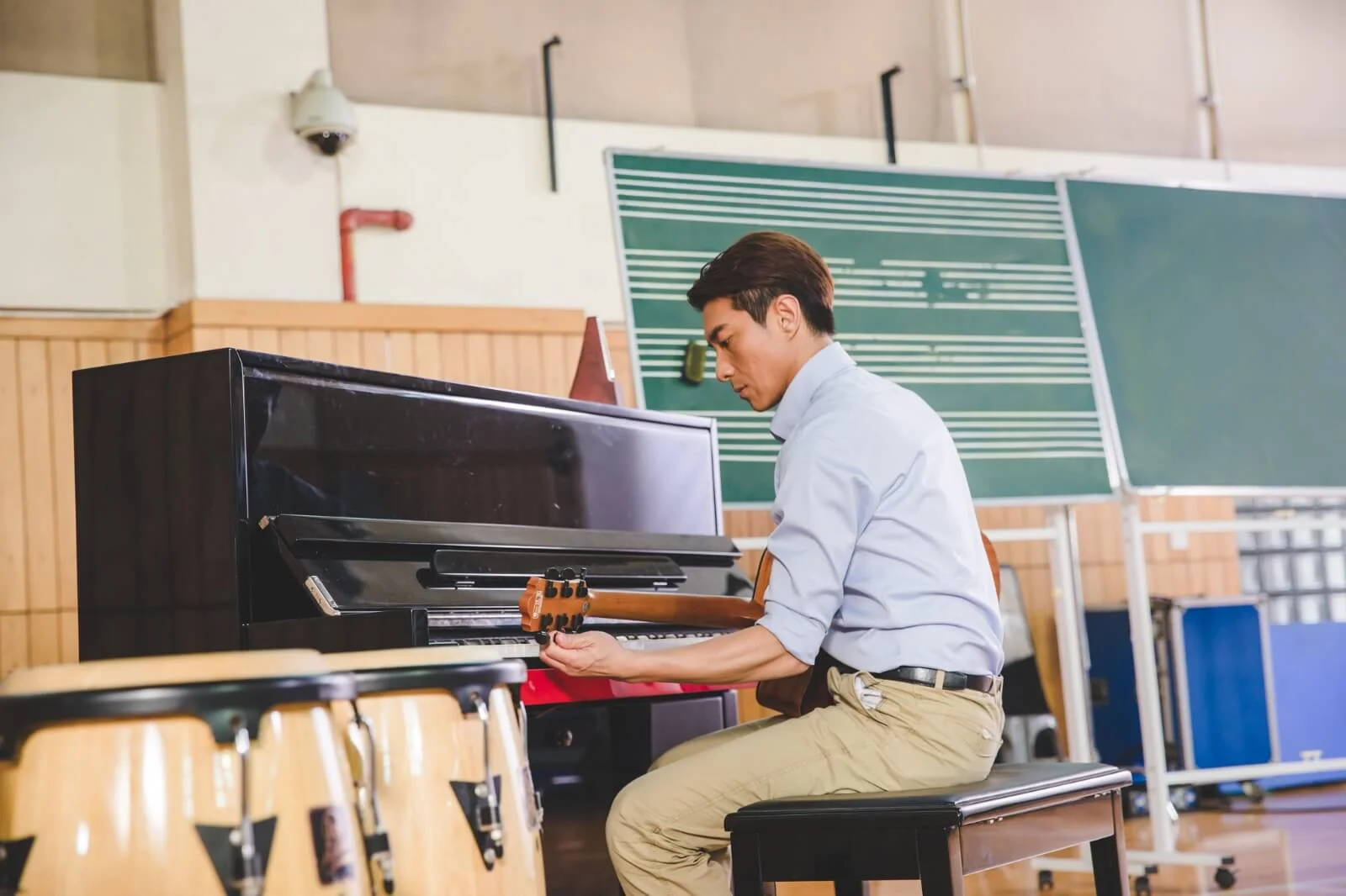 周國賢在新戲《熱唱吧》飾演音樂老師,與調皮學生陳慧敏有段師生感情。