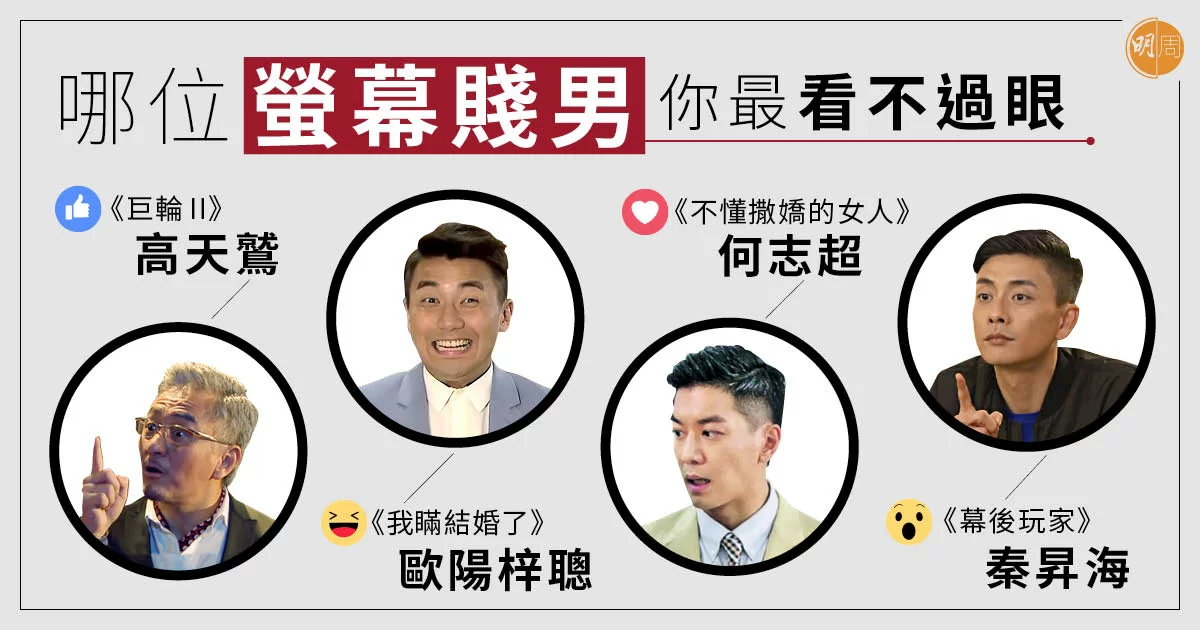 無綫近年出產了不少賤男角色,令觀眾看得咬牙切齒。先有高天鷲和秦昇海,再來就是歐陽梓聰和近日被全城大罵的「賤Han」。你最看不過眼的是誰?