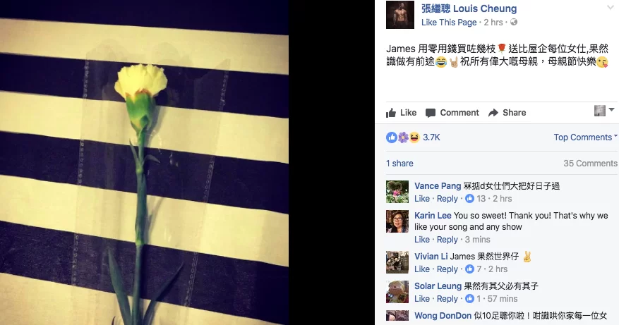 很多明星藝人藉今天是母親節,都紛紛在個人社交媒體貼上與母親或是自己孩子的合照,例如楊千嬅上載與母親面貼面合照,轉頭又上載與兒子Torres睇戲的合照。