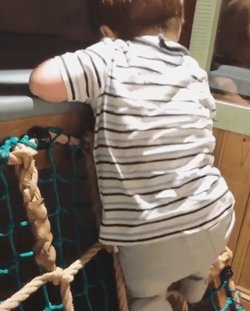 見BBQ自己一手一腳爬上頂,非常叻仔!同時婉婉又留言話長期工作,擔心囝囝遲下會唔認得自己,「Q MaMa在天昏地暗拍攝之際,爭取到少少時間陪伴BBQ先生,非常珍惜,真係有D擔心佢遲D會連MaMa都唔認得,Working MaMa的憂慮。」