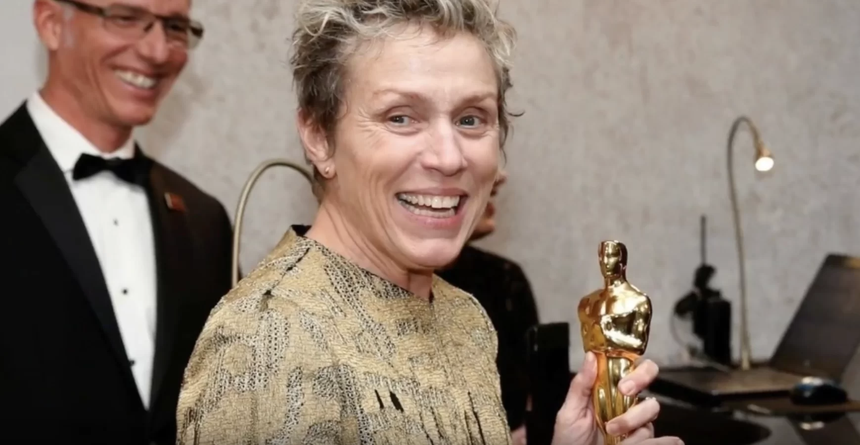 出爐影后法蘭西絲麥杜文(Frances McDormand)憑《廣告牌殺人事件》二度奪獎,心情興奮的她於頒獎禮後的派對上玩得盡興,可惜一時大意,竟被有心之人橫刀「奪獎」!法蘭西絲發現本應握在手上的「小金人」失去影蹤,被指一度激動落淚,與老公四出「尋人」,最後由一位攝影師及保安發現「元兇」。