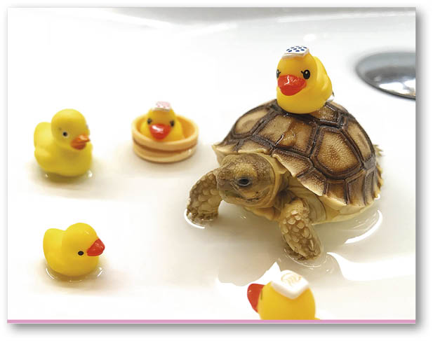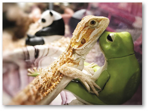 Queenie 說:「因為當時的空間許可,我幾乎將整條金魚街搬了回家,兩隻貓又生了幾胎,結果貓成員變了廿四隻,後來我都覺得要給別人愛惜牠們的機會,所以將貓 BB 全送了給朋友,剩下兩隻老貓,牠們老死後再沒養貓了;那時候我因為工作經常出埠,工人姐姐未能依照我的方法妥善照顧變色龍和蜥蜴,令牠們相繼死亡,有一段時間我再沒買寵物,覺得不能連累牠們。」直至見到炸両和菠蘿包,Queenie 再次心動,她說:「因為已有了養鬆獅蜥蜴和盾臂龜的經驗,其實不難養,而且數量少也易於照顧,平日只要控制好家中濕度,得閒帶牠們曬太陽,注意飲食就可以,家中多了兩位新成員,肥雞和雞肶沒有多大的感覺,反而炸両見到牠們,以為是敵人,會張大口裝腔作勢。」